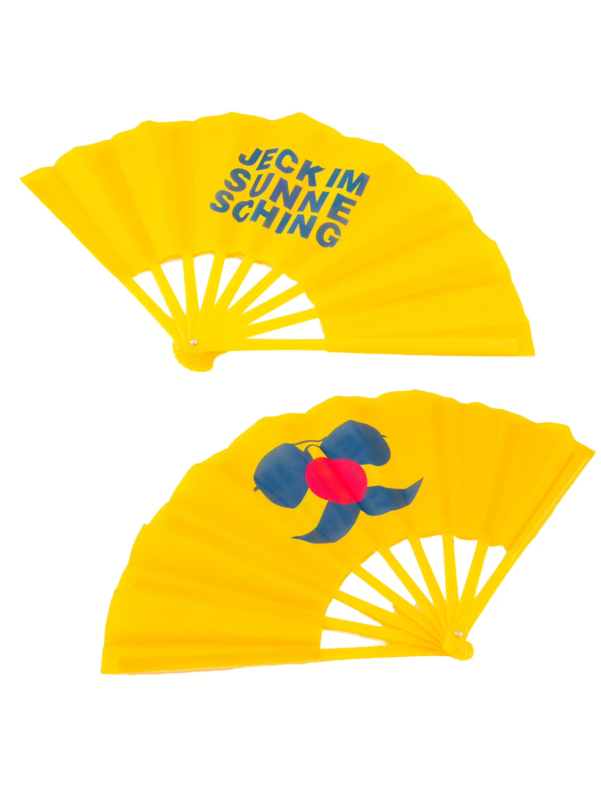 Mit unserem Fächer im „Jeck im Sunnesching“-Look bringst du frischen Wind in jede jecke Sommerparty. Auf der einen Seite steht der volle Name „Jeck im Sunnesching“, auf der anderen Seite findest du das bekannte Logo der Veranstaltung. Ob beim Feiern unter der Sonne, beim Schunkeln oder beim Mitsingen kölscher Lieder – dieser Fächer ist nicht nur praktisch, sondern auch ein echter Hingucker!