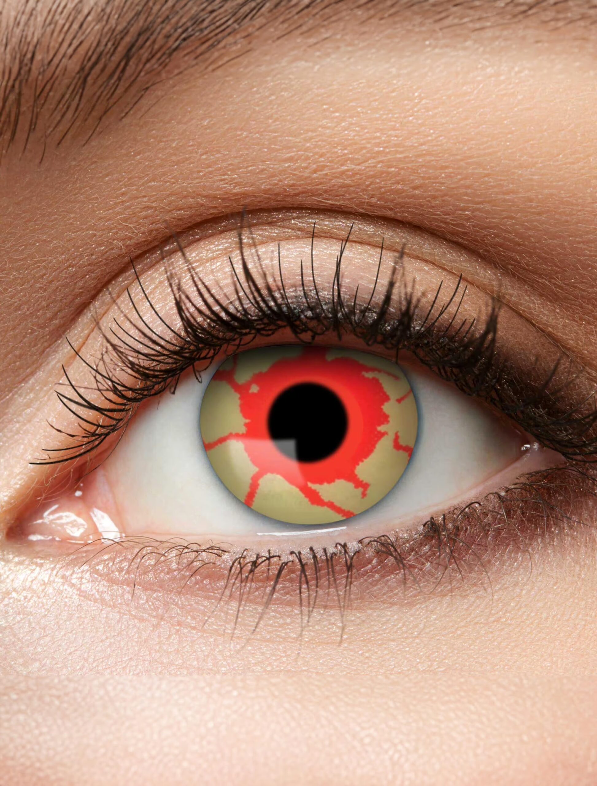 Schau mir in die Augen Kleines! Diese blutigen Augen haben eine wahrhaft erschreckende Wirkung. Die sehr hochwertigen, beige Kontaktlinsen im Bloodshot-Design machen aus wirklich jedem Kostüm ein filmreifes Horror-Outfit. Genau das Richtige, um an Halloween für Angst und Schrecken zu sorgen – aber auch an Karneval nicht verkehrt!