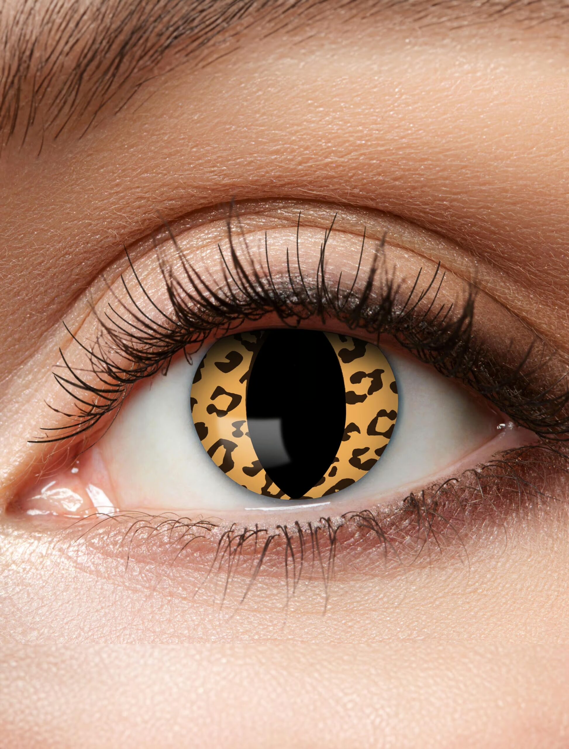 Mit diesen animalischen Leopard Kontaktlinsen machst Du Deine Augen zu einem ganz besonderen Hingucker! Deine Augenfarbe wird mit einem auffälligen Leopardenfell-Muster bedeckt, während die Pupillenform an eine echte Raubkatze erinnert. Damit wird wirklich jedes Kostüm zum filmreifen (Horror-)Outfit!