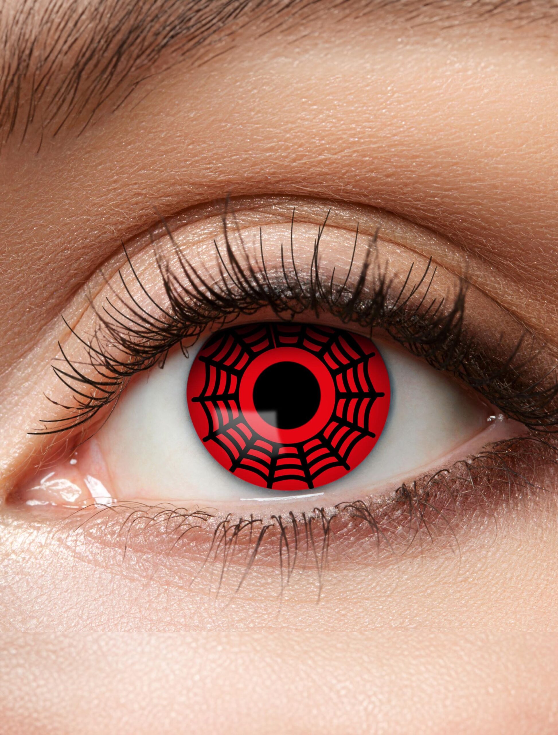 Schau mir in die Augen Kleines – denn diese Augen sind einfach nur gruselig! Die sehr hochwertigen Spinnen Kontaktlinsen machen aus wirklich jedem Kostüm ein filmreifes Horror-Outfit. Deine echte Augenfarbe wird durch ein schwarzes Spinnennetz auf rotem Grund ersetzt. Genau das Richtige, um an Halloween für Angst und Schrecken zu sorgen – aber auch an Karneval nicht verkehrt!