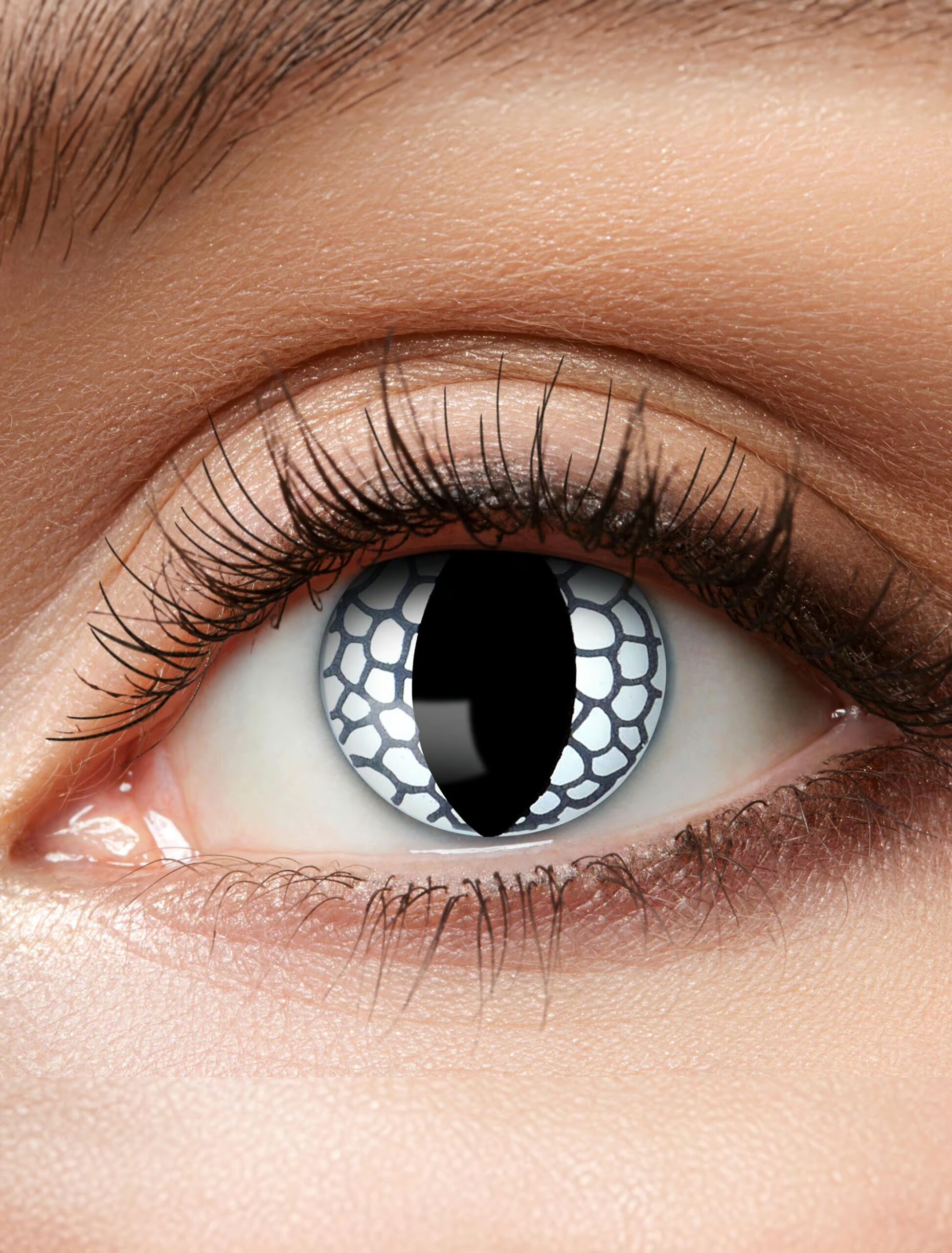 Mit diesen animalischen Kontaktlinsen machst Du Deine Augen zu einem ganz besonderen Hingucker! Die hochwertigen Linsen werden einfach auf die Netzhaut gesetzt und verwandeln Deine Augenfarbe in ein monströses Weiß, während die Facetten und die schwarze Pupillenform stark ein Insekt oder einen Drachen erinnert. Damit wird wirklich jedes Kostüm zum filmreifen (Horror-)Outfit!