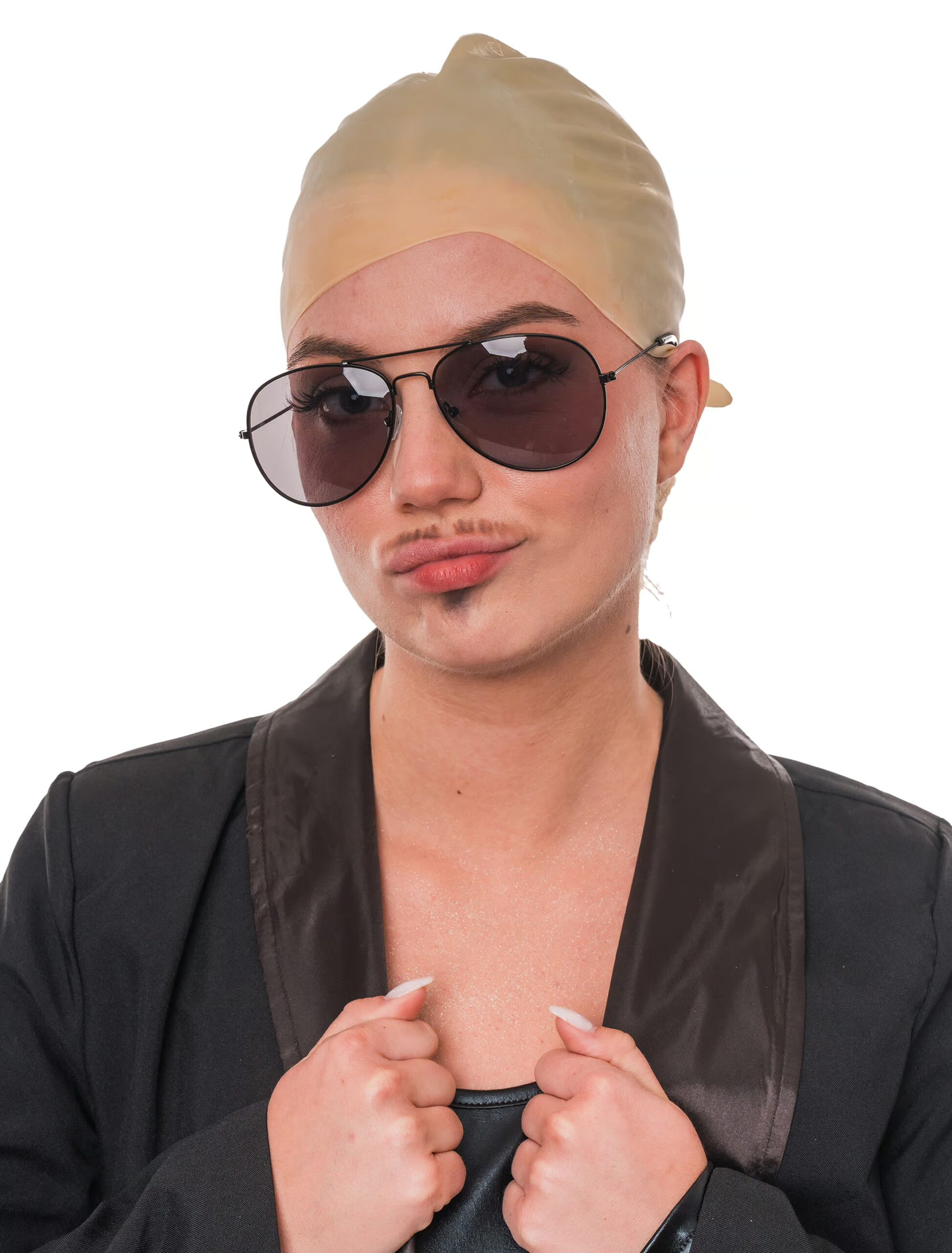 Schnell und einfach eine Glatze zaubern ohne Haare zu lassen? Kein Problem! Einfach die Latexmaske über Dein Kopfhaar stülpen und zurechtschneiden und schon hast Du die perfekte Glatze für die nächste Party.