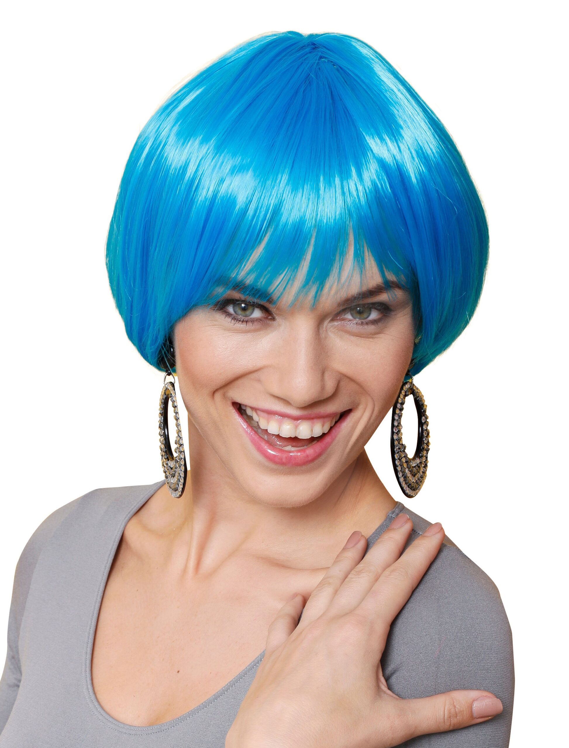 Blau ist nicht nur etwas für die Wichtel. Auch Du kannst damit eine glänzende Show hinlegen. Diese Perücke mit Bob-Schnitt in Blau hilft Dir dabei. Mach Dein schrilles Outfit für die nächste Kostümparty perfekt und kombiniere die Perücke mit einem schillernden Paillettenkleid oder spacigem Robo-Outfit. Aber es muss nicht immer eine komplette Verkleidung sein. Die Perücke mit blauem Bob sorgt auch alleine für eine atemberaubende Verwandlung.