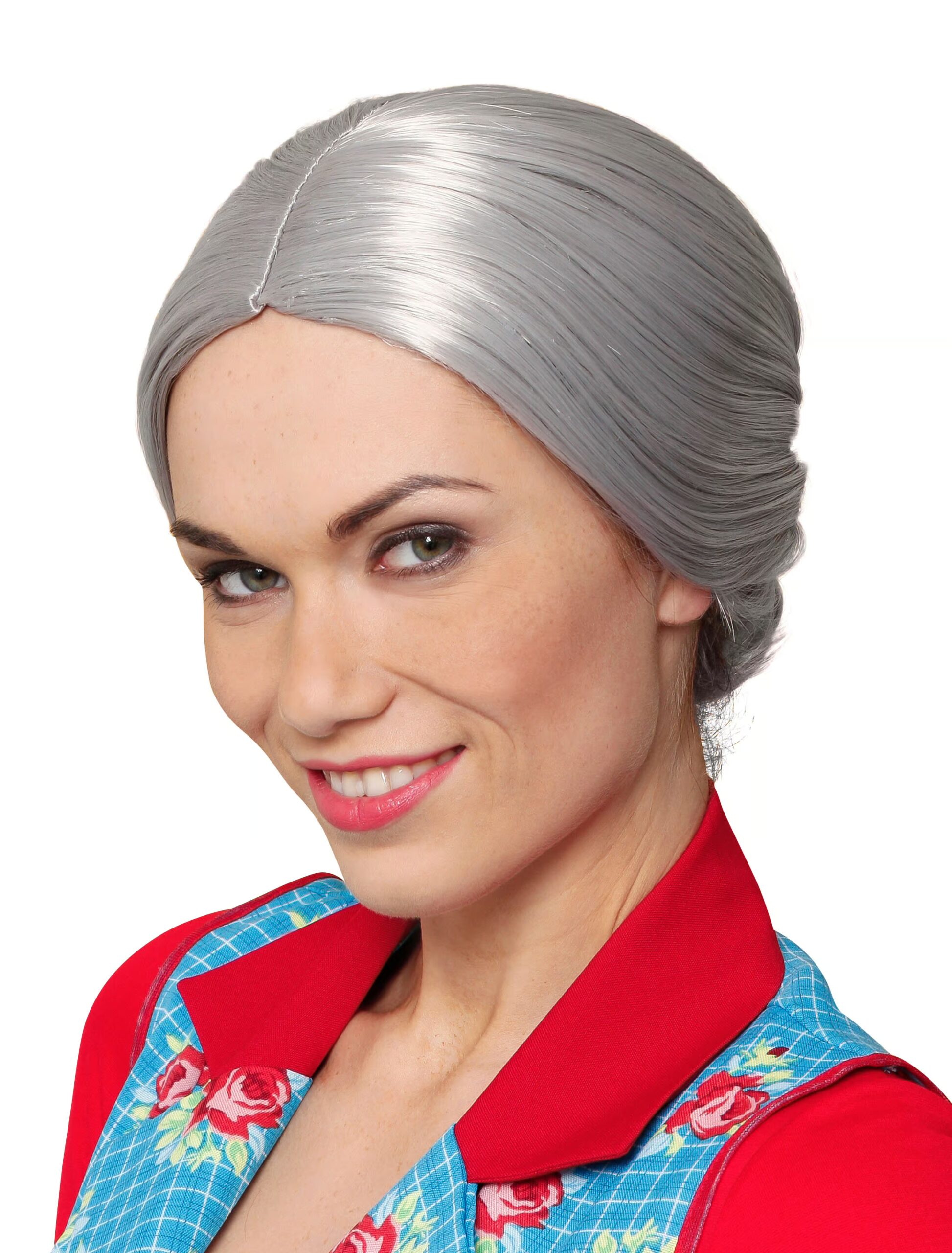 Kostümzubehör Kostümzubehör Perücke Großmutter glatt hochgesteckt grau