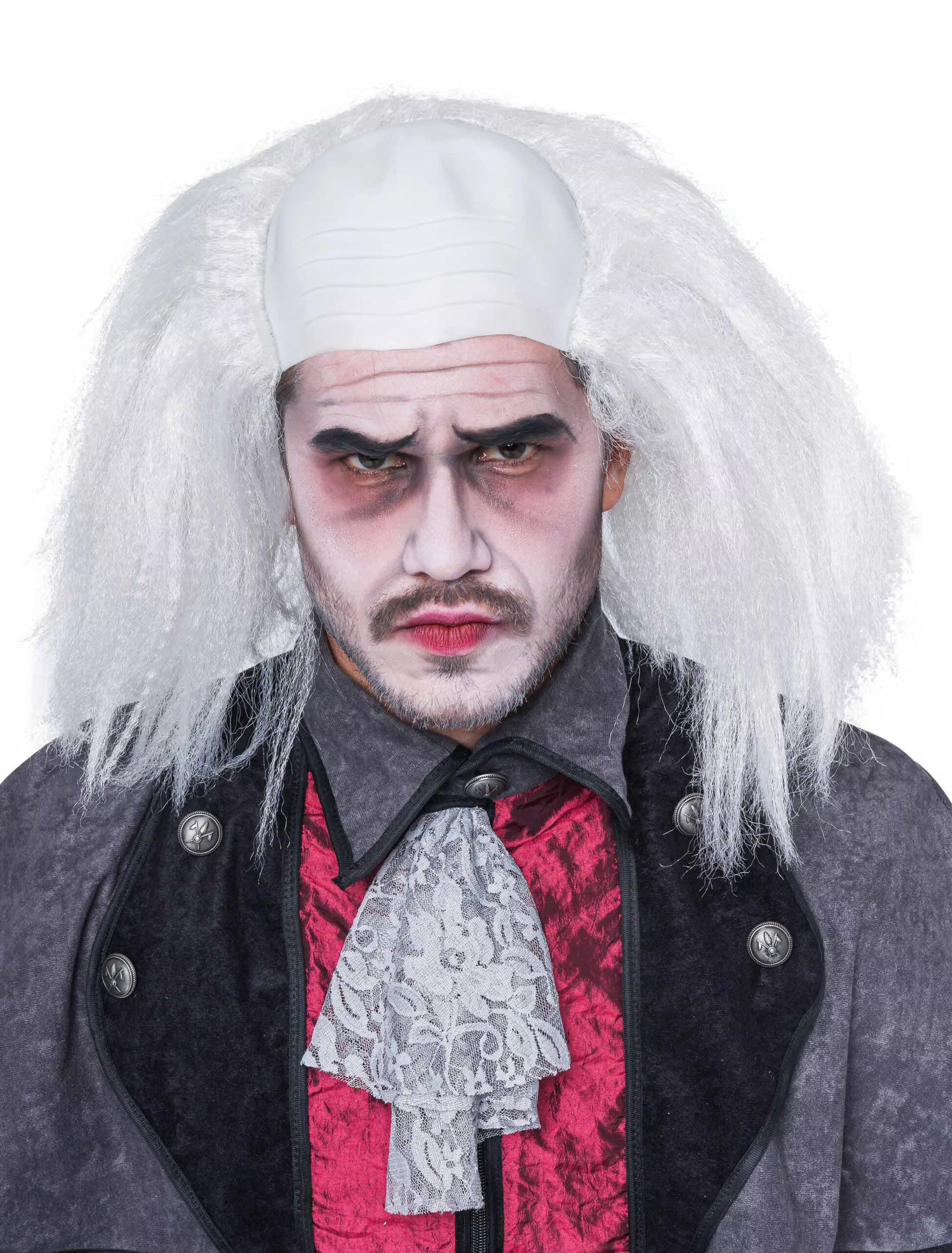 Für einen gruseligen Look auf einer Party, an Fasching oder zu Karneval ist unsere Perücke Emmet genau das Richtige für Dich! Die schulterlange und krause Perücke Emmet in der Farbe weiß ist aus 100% Polyester gefertigt und besitzt eine weiße Halbglatze. Ob als Albert Einstein, Dracula oder gruseliges Monster verkleidet, diese Perücke ist für viele Kostüme perfekt geeignet!