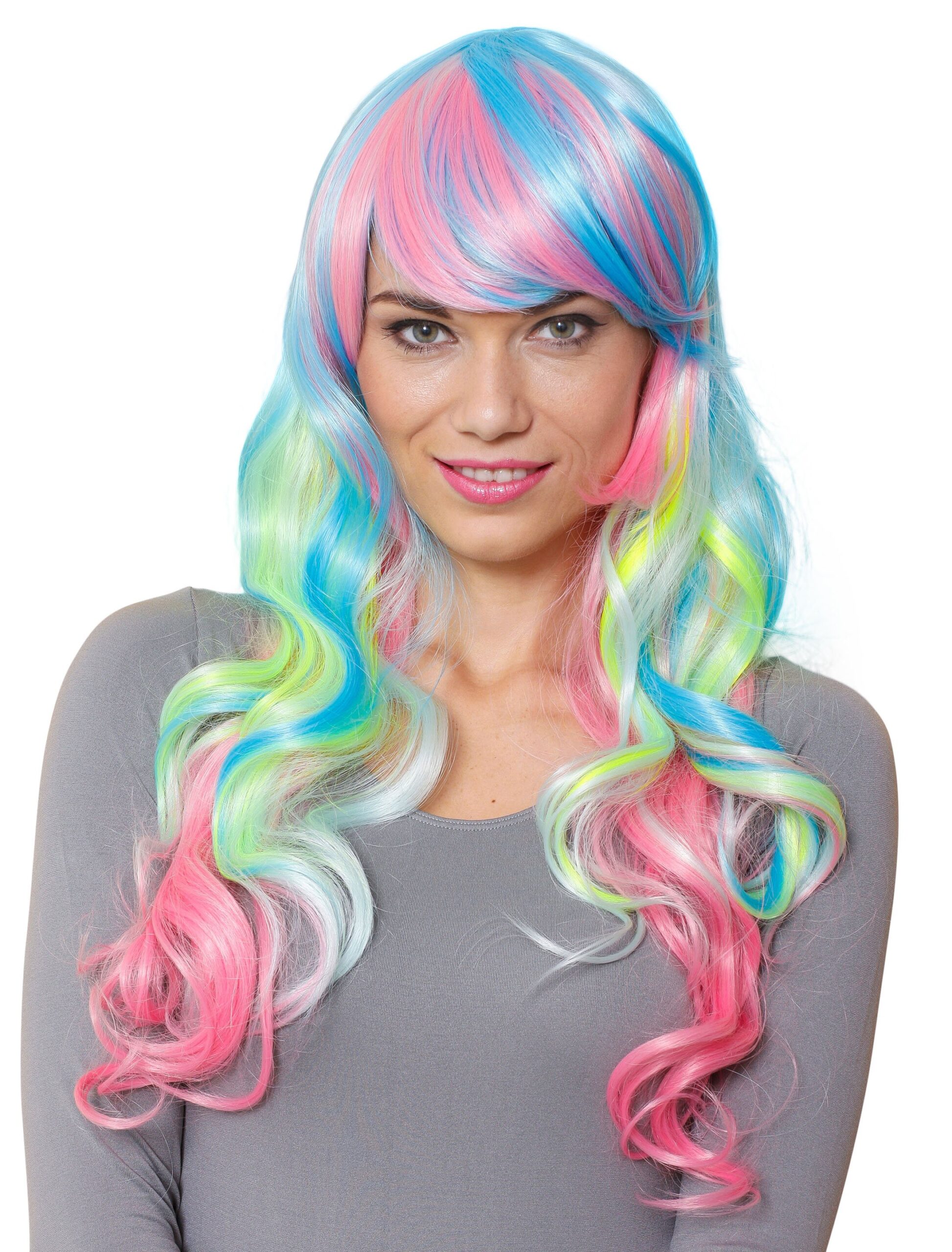 Kostümzubehör Kostümzubehör Perücke lang lockig Pony bunt Farbe: mehrfarbig
