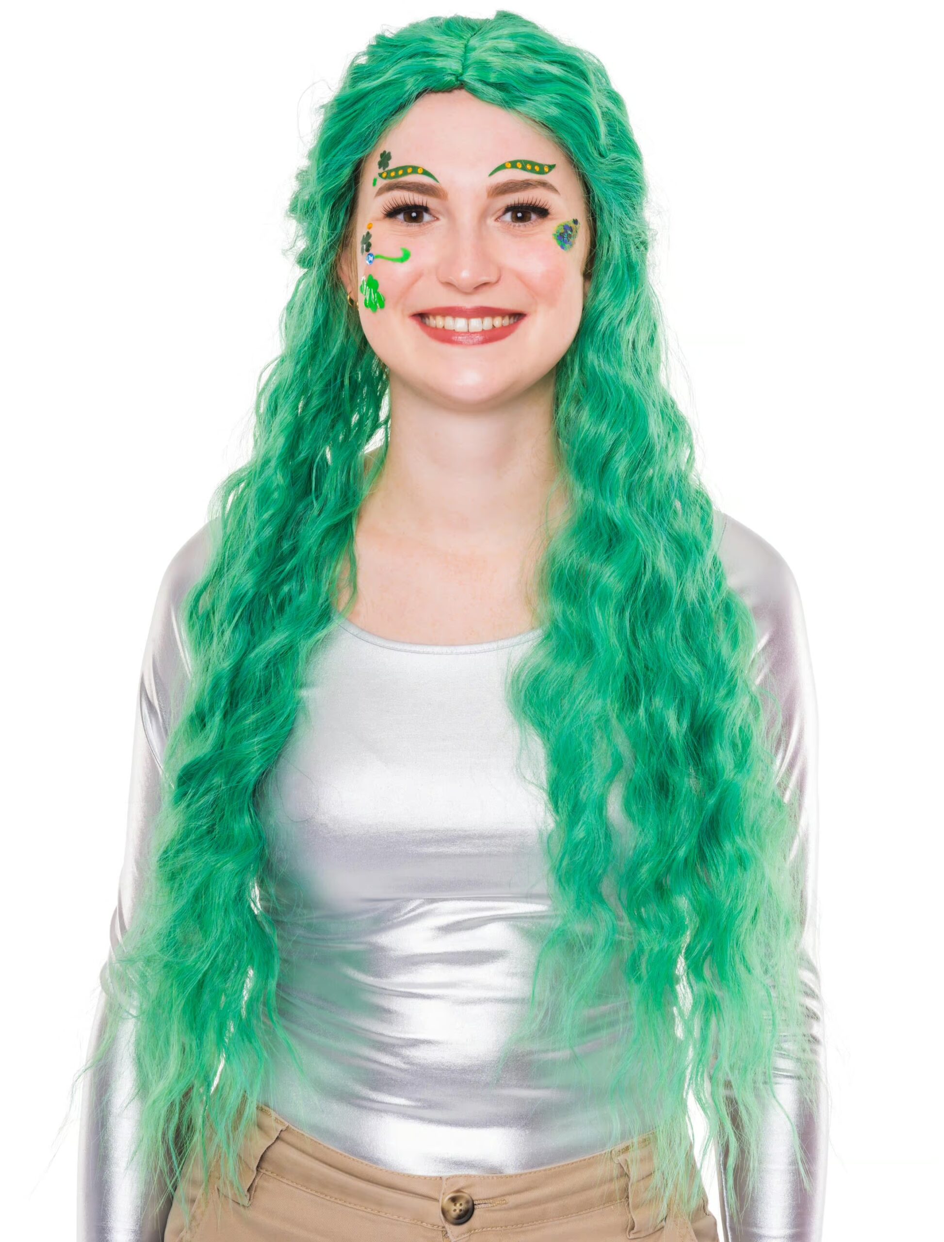 Perücke lange Locken grün one size, ideal für Karneval & Fasching