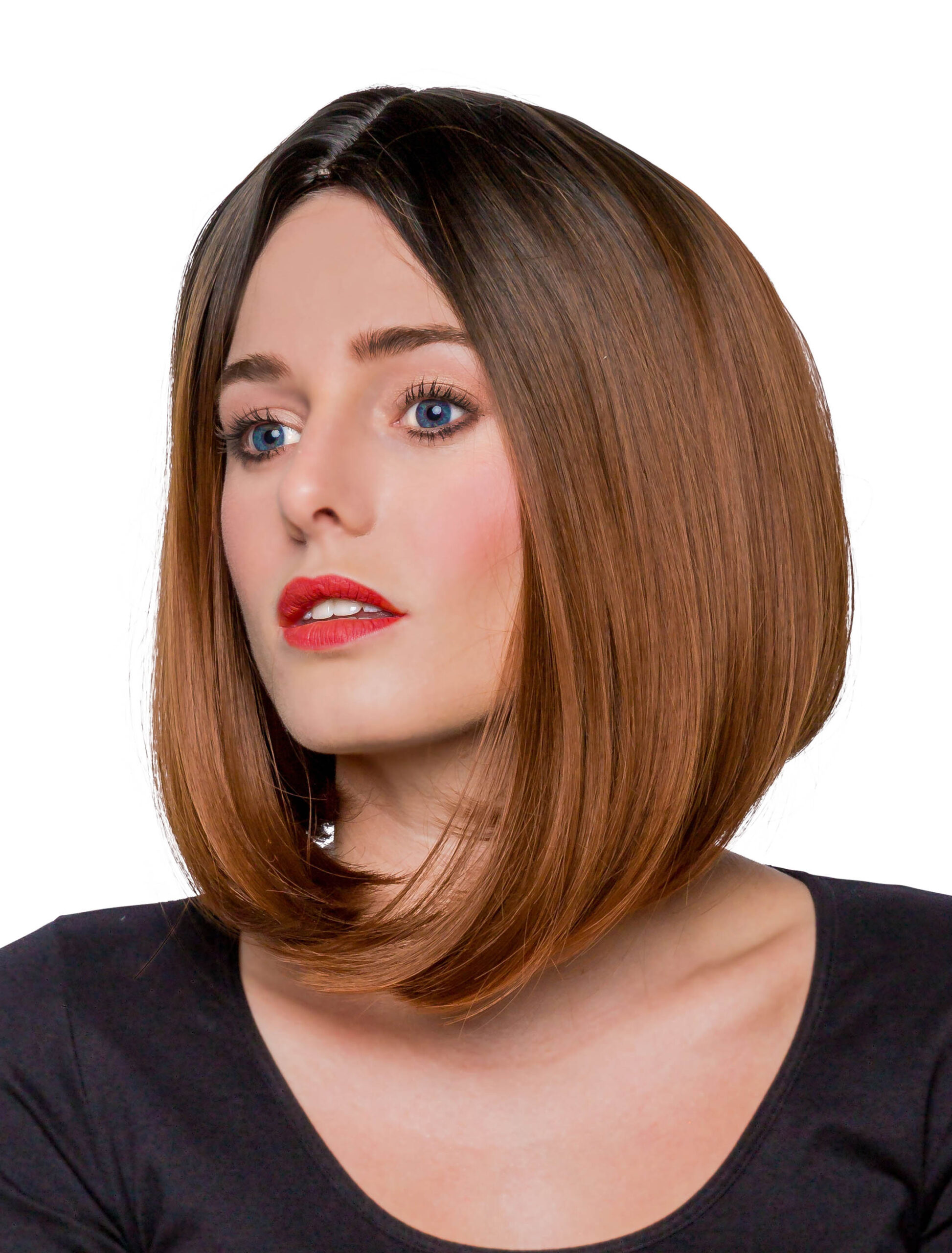 Wunderschöner Bob, der nicht nur sehr elegant, sondern auch extrem echt aussieht! Das glatte, braune Kunsthaar reicht bis zu den Schultern und überzeugt durch den asymmetrischen Schnitt: Vorne ist das Haar länger geschnitten als auf der Rückseite. Die Perücke passt wunderbar zu einer Vielzahl an Kostümen.