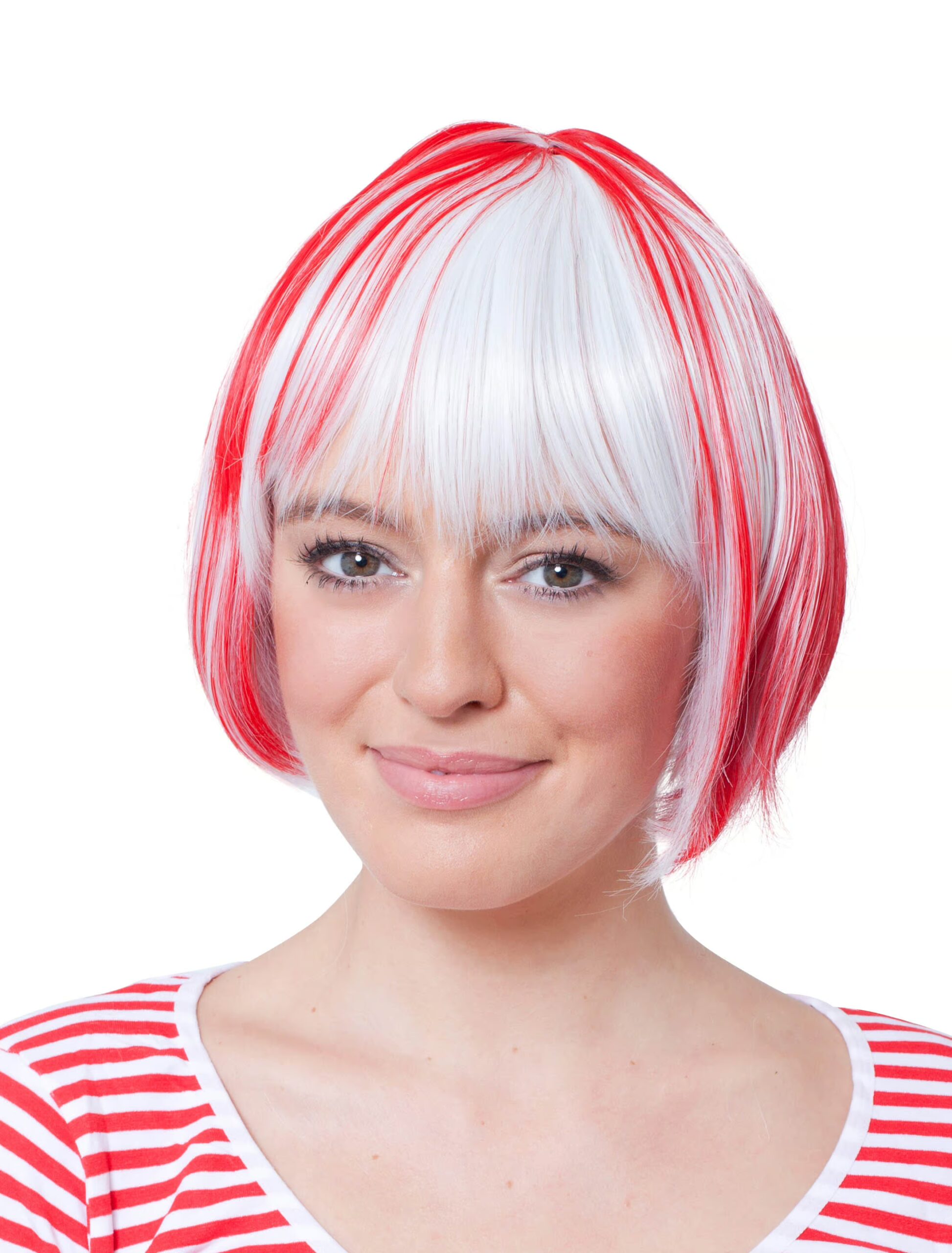 Sei wer du willst! Möchtest Du mal etwas Neues wagen? Dann versuch es mal mit einer Perücke! Denn kaum ein Accessoire ist so typverändernd wie die Mähne auf dem Kopf. Diese extravagante Pagenkopf-Perücke besteht aus weißem Kunsthaar, welches rundum mit knalligen, roten Strähnen verziert ist. Das Pony rundet Deinen frechen Look perfekt ab! Nur zu, trau Dich!