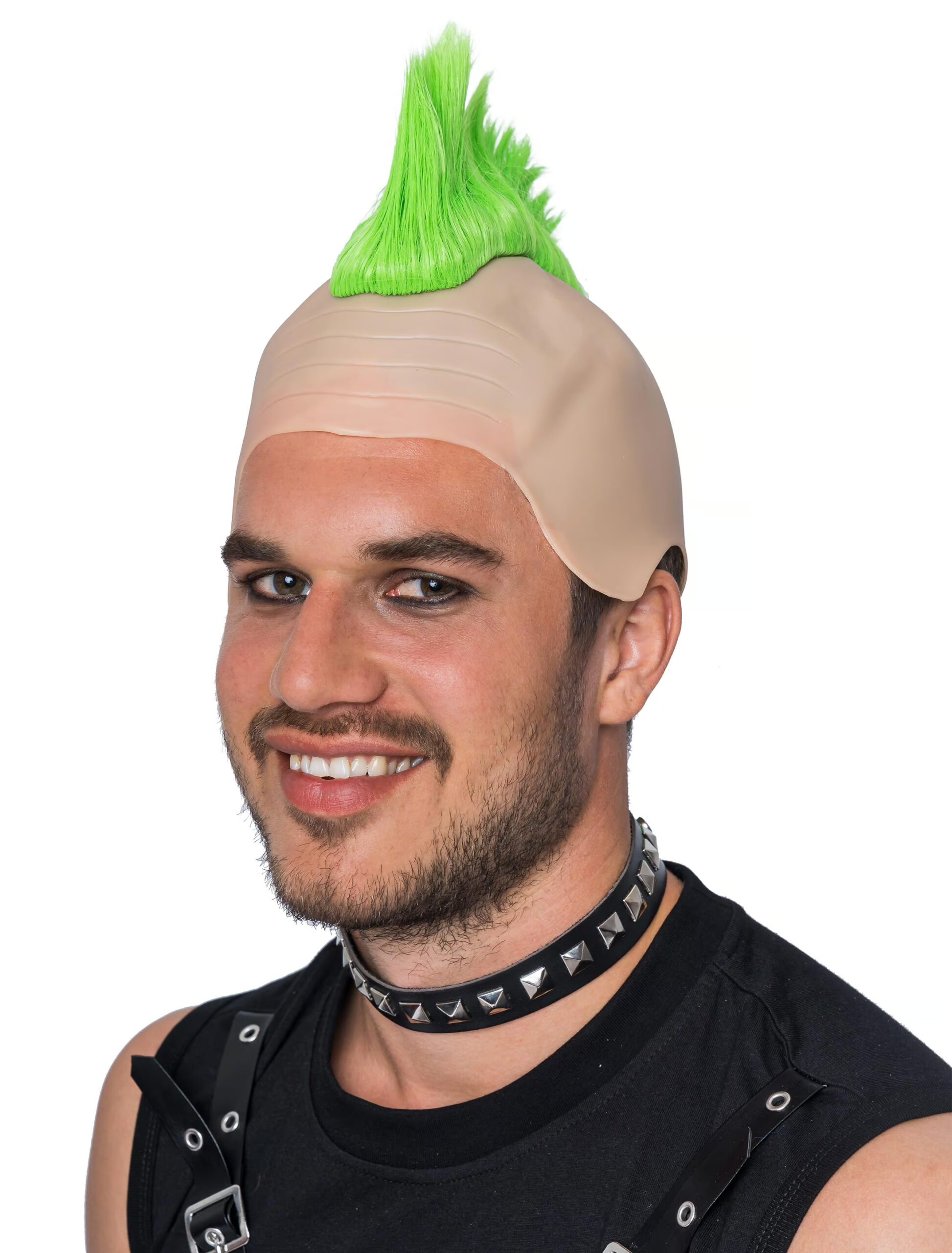 Einmal als Punk provozieren? Die Punker Perücke grün vervollständigt Dein Kostüm mit einer radikalen farbigen Frisur. Die Haare bestehen aus Polyester und sitzen auf einer künstlichen Glatze. Ein klassischer Irokese ohne dass Deine eigenen Haare leiden müssen. Die Punker Perücke grün ist perfekt, um an Halloween oder Karneval die Zeit der Punks wiederaufleben zu lassen.
