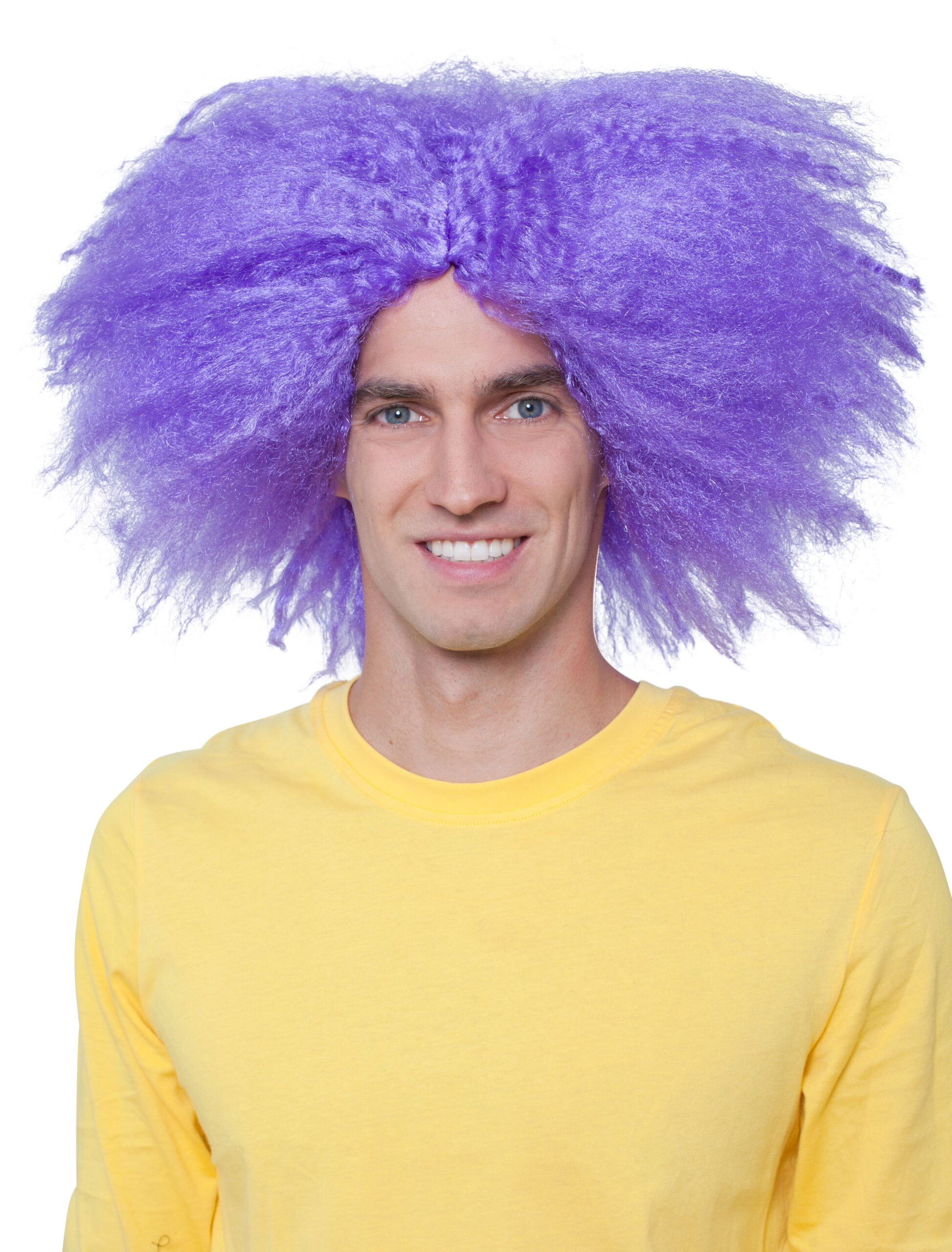 Mit unserer Perücke Kevin bekommst Du eine besonders verrückte Haarpracht verpasst! Die lilafarbenen Haare stehen strubbelig in alle Richtungen ab. In Sekundenschnelle verwandelst Du Dich mit dieser Frisur in eine völlig andere Person. Ein wahnsinniger Hingucker und die ideale Ergänzung für Dein Kostüm! Verkleide Dich einfach zu einem bösen lila Hilfsarbeiter.
