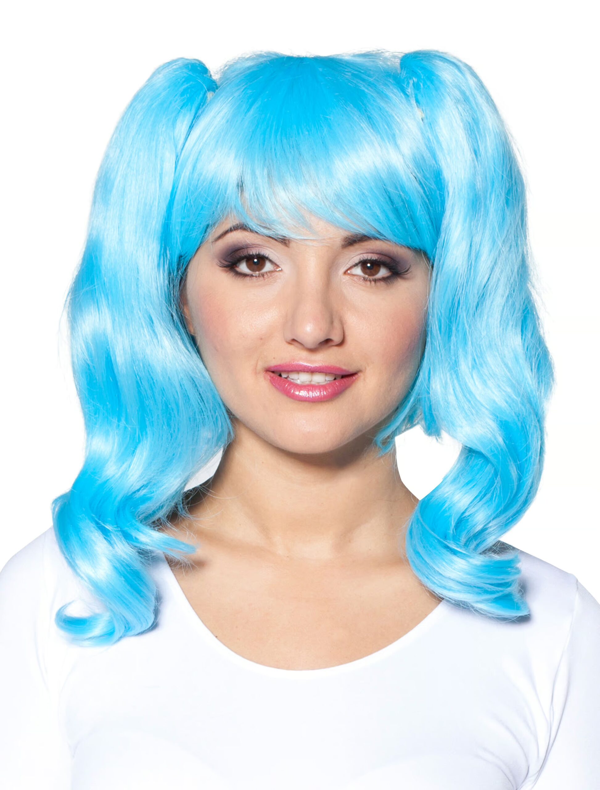 Du hast die Haare schön! – Mit unserer Perücke Penelope wirst Du dieses Kompliment sicher öfter hören. Denn die modern geschnittene Bobfrisur mit zwei Zöpfen in herrlichem Blau ist ein absoluter Hingucker. Die perfekte Haarpracht für alle Manga- und Comic-Fans, Karneval, Halloween oder die nächste Mottoparty!
