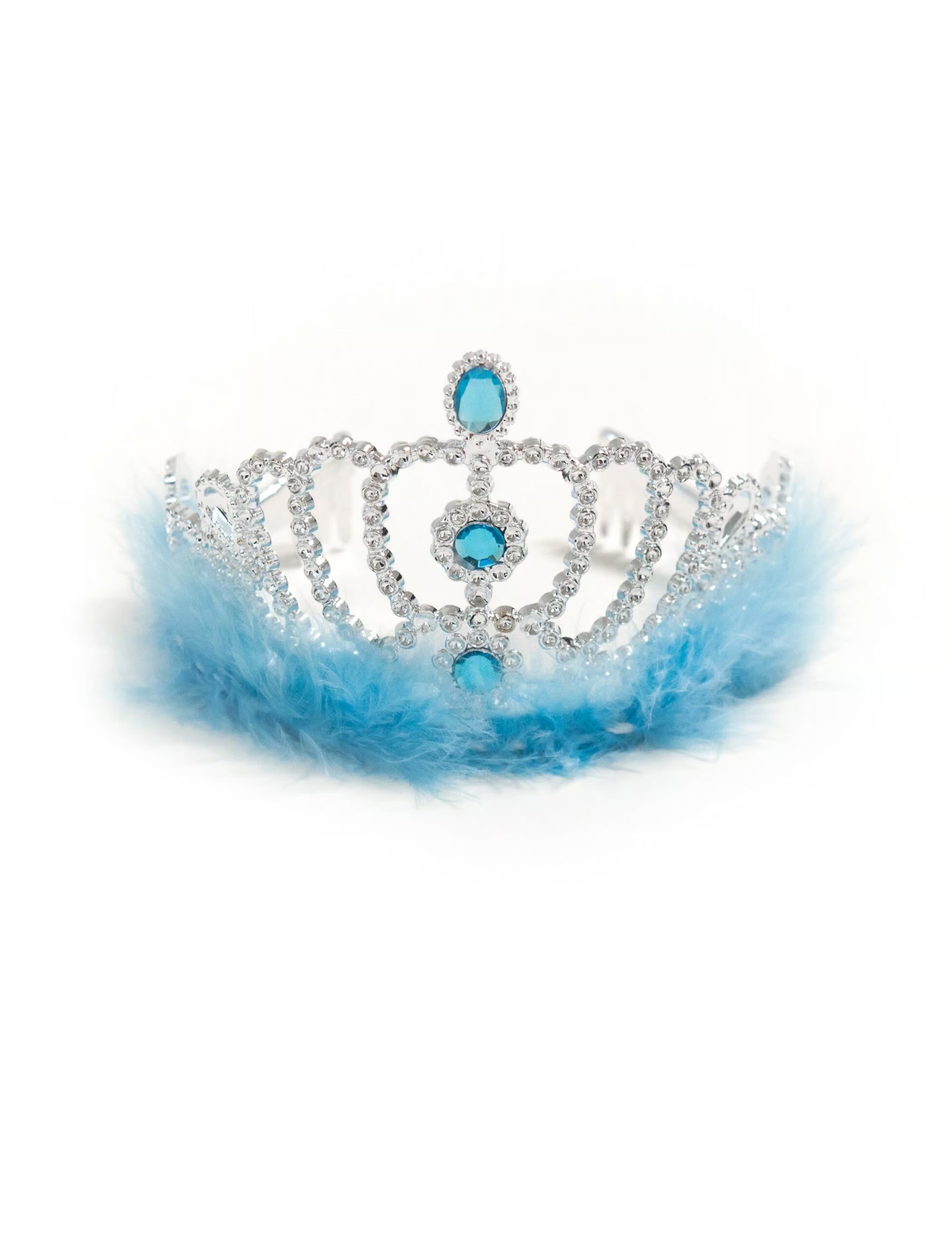 Kostümzubehör Krone mit blauen Federn silber