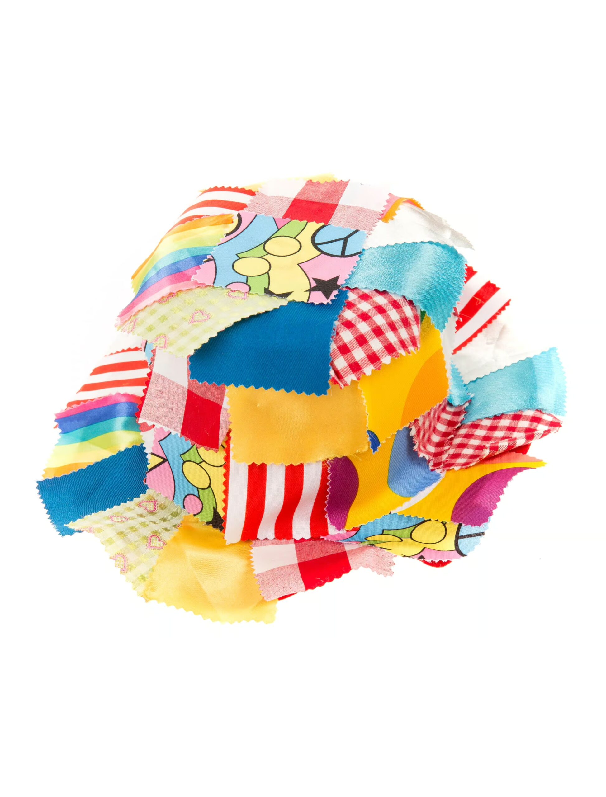Dieser ausgefallene Lappenhut ist ein echter Hingucker an Karneval! Der Hut ist mit zahllosen kunterbunten Flicken in unterschiedlichsten Mustern bestückt und hat eine Höhe von etwa 15 cm. Die perfekte Kopfbedeckung für Dein Clown-Kostüm!