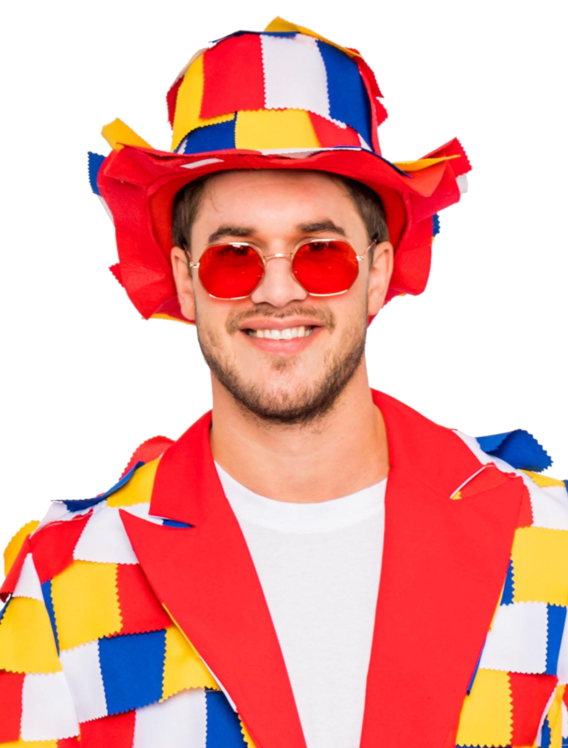 Schön bunt ist dieser coole rot-weiß-blau-gelbe Lappenhut mit Krempe, der Dich zum Hingucker macht und den Du prima mit einfarbigen roten, weißen, blauen und gelben Kostümteilen aus unserem Shop kombinieren kannst oder Du nutzt ihn als perfekte Ergänzung zu unserem Lappenclownkostüm. Egal wie, mit diesem wirkungsvollen Hut aus Polyester und den bunten Flicken im Patchwork-Look, erweckst Du die Neugier der Damen und so manche würde Dich sicher gern näher kennen lernen. Der perfekte Hut als Clown der Mainzer Fastnacht.