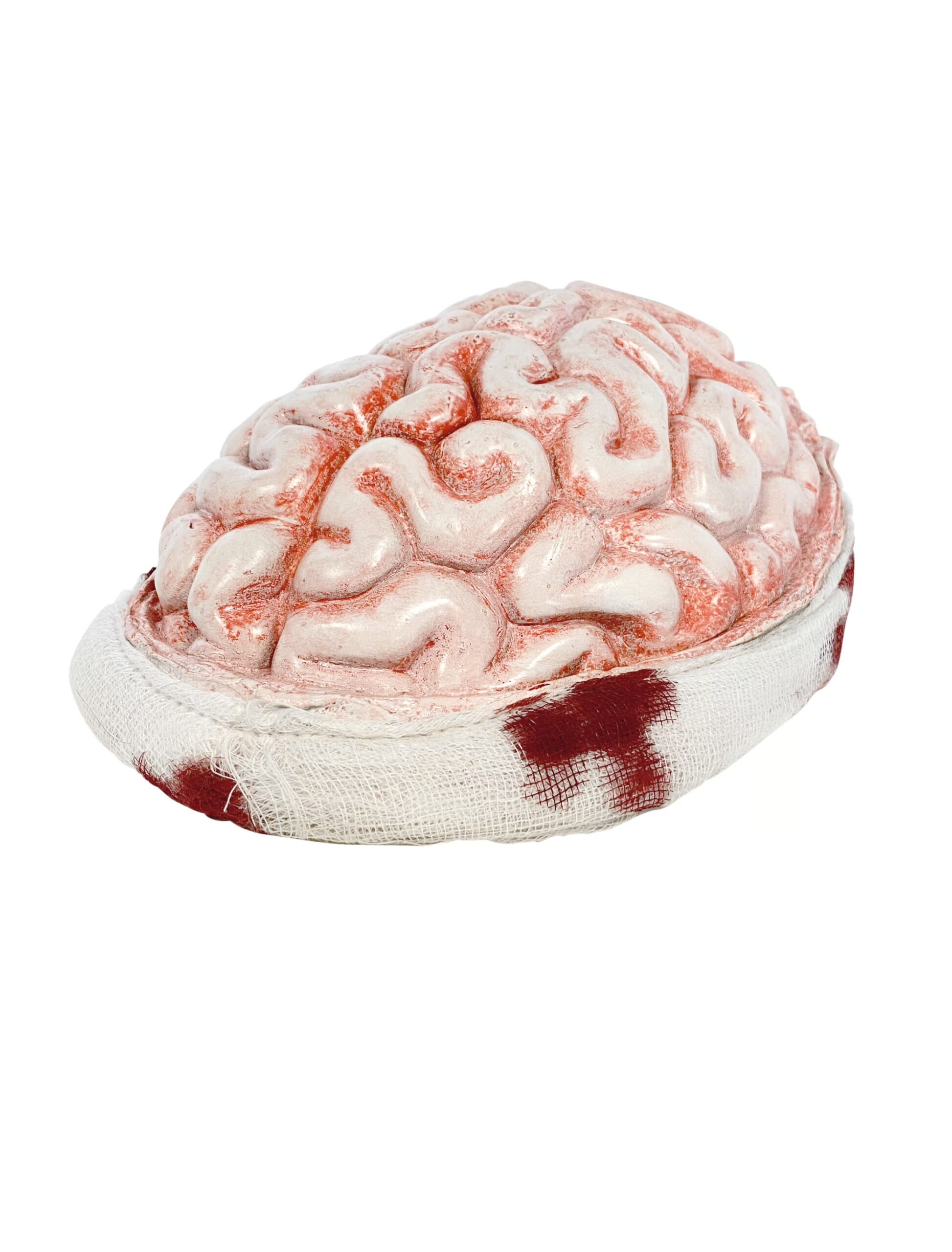Nichts für schwache Nerven ist diese etwas andere Kopfbedeckung! Die Latexkappe, die Du auf Deinem Kopf tragen kannst, ist mit einem teilweise blutigen Gehirn und rundum mit einer blutgetränkten Bandage verziert. Das Accessoire eignet sich hervorragend für alle, die sich auf Halloween als Zombie, Untoter oder Patient verkleiden und ihre Mitmenschen schocken möchten!