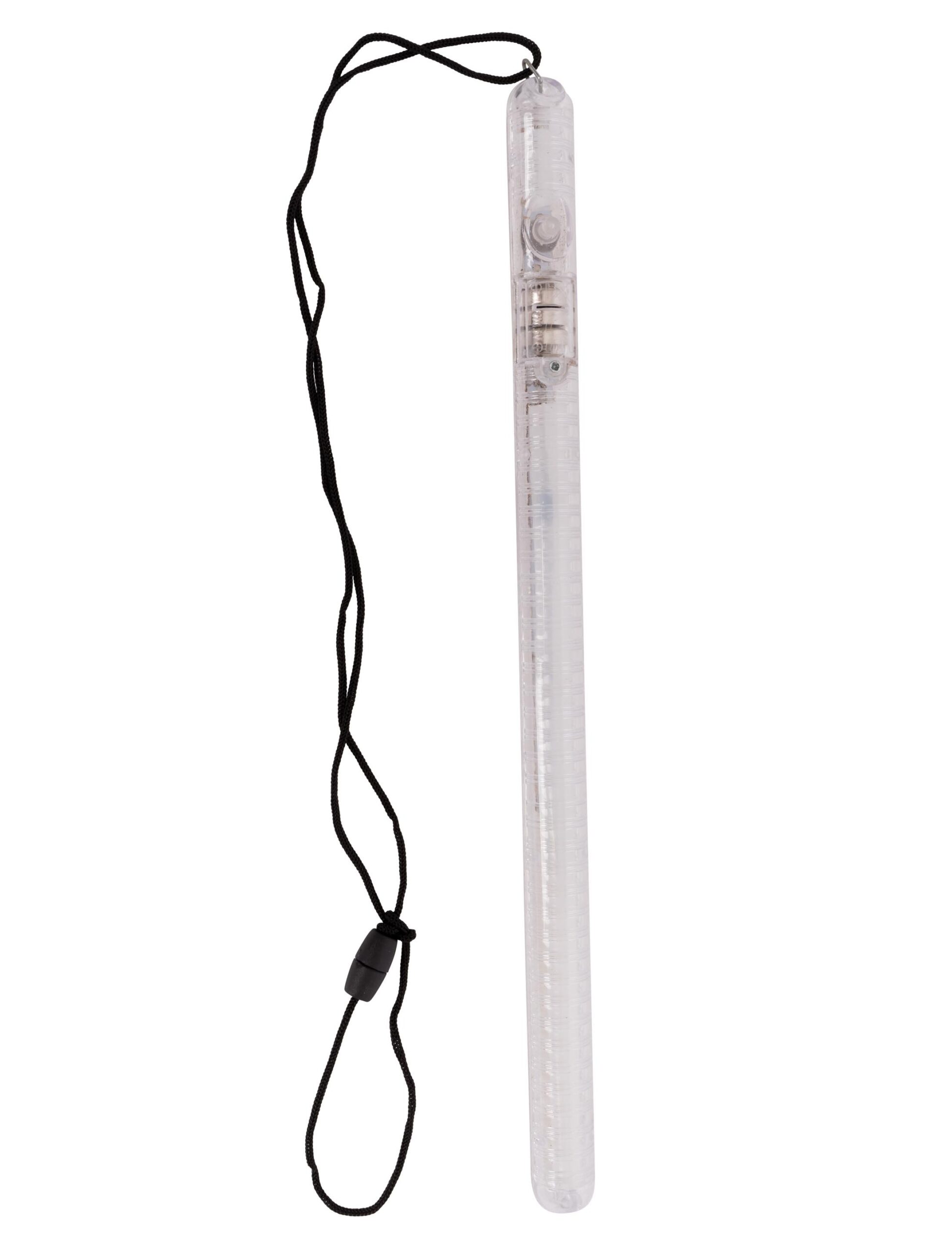 Sehr interessant ist dieser lange, weiße Leuchtstab, inklusive Knopfzellen-Batterien sowie Ein- und Ausschalter, der mit seinem roten Licht genau das passende Accessoire für Vampire, Monster und Hexen ist. Er verfügt über viele verschiedene Leuchtfunktionen und kann an der zugehörigen Kette um den Hals getragen werden, sodass die Wesen der Nacht ihre Hände für ihre dunkle Leidenschaft frei haben. Ein Must-Have für Grusel- und Horrorpartys!