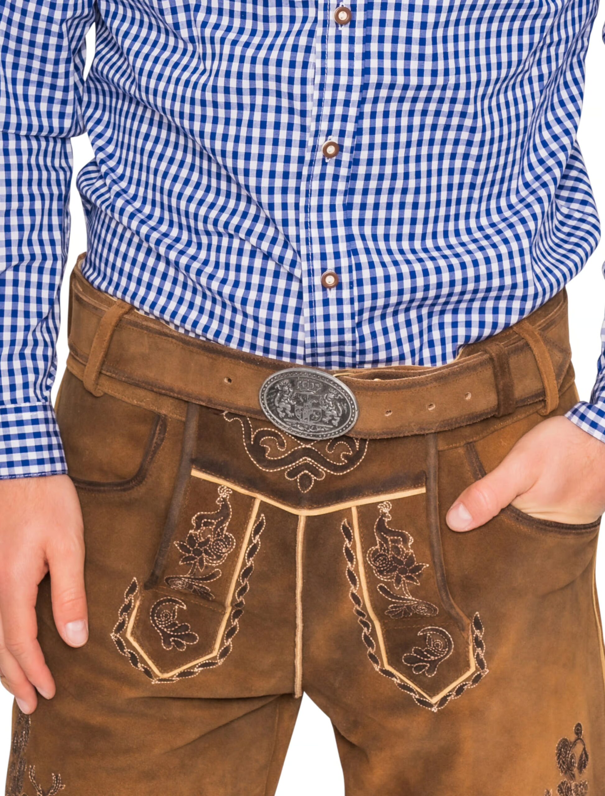Praktisch und festlich zugleich! Dieser braune LederGürtel ist ein stilechtes Must-Have zu jeder Tracht! Das fesche Accessoire besteht zu 100% aus Rindsleder und wird von einem edlen, silberfarbenen Verschluss mit Löwenwappen geziert. Der LederGürtel lässt sich perfekt zur Lederhose und zum Hemd kombinieren. Ein tolles Highlight für das kommende Oktoberfest!