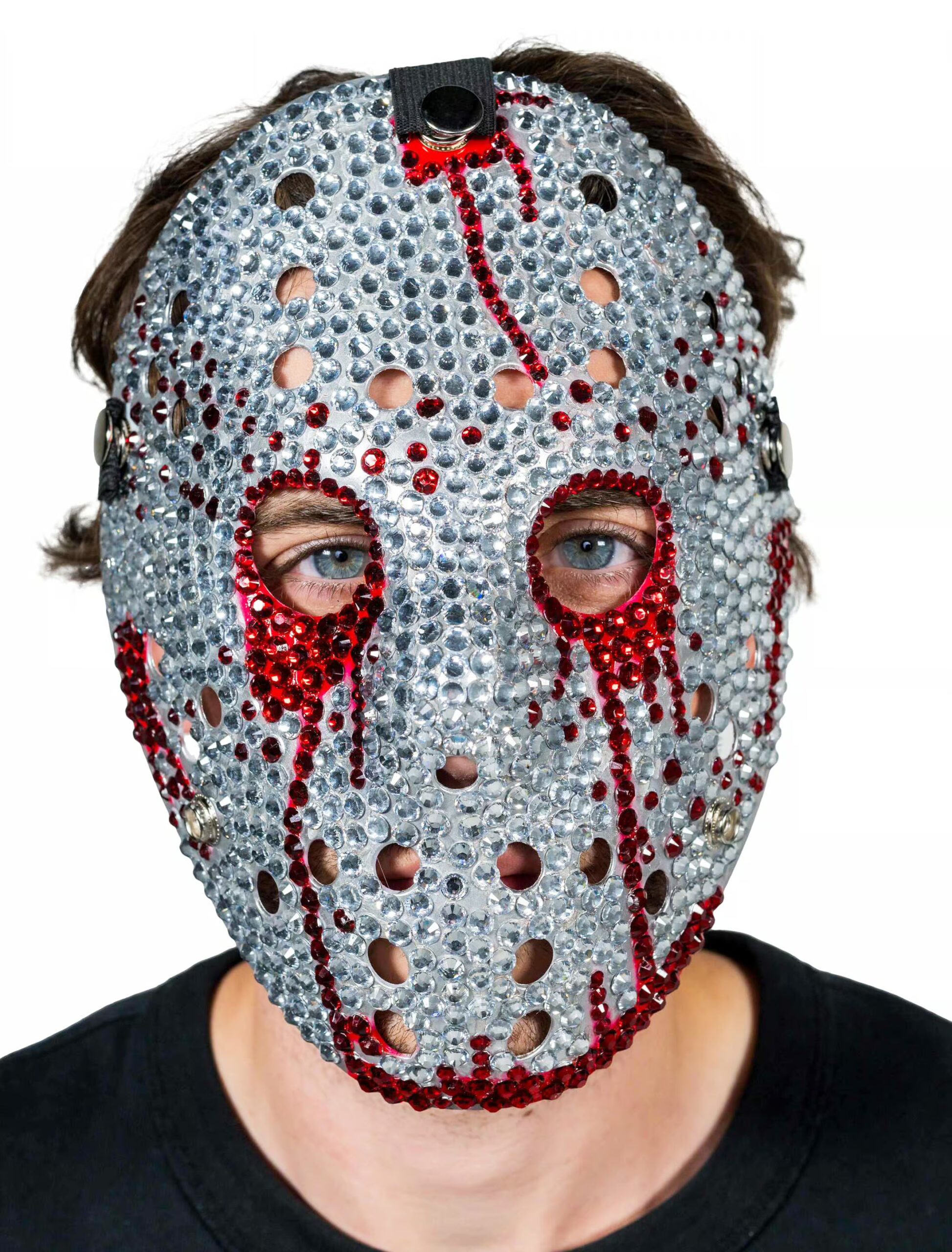 Du willst Angst und Stil perfekt vereinen? Mit unserer Hockeymaske mit Strasssteinen wirst du zum schaurig-glitzernden Highlight jeder Horrorparty! Diese Maske bringt dich direkt aus dem Schlachthaus auf den Laufsteg – dank der funkelnden Strassteine, die nicht nur für Glamour sorgen, sondern auch teuflisch clever als herunterfließendes Blut arrangiert sind. Grusel-Chic in Perfektion! Die Maske bedeckt dein Gesicht komplett, sodass du eine mysteriös-bedrohliche Aura ausstrahlst. Die Kombination aus blutigen Details und edlem Glanz macht dich zum perfekten Mix aus Schrecken und Eleganz. Egal ob Halloween, Mottoparty oder Karneval – mit dieser Hockeymaske bist du der funkelnde Alptraum, der alle Blicke auf sich zieht!