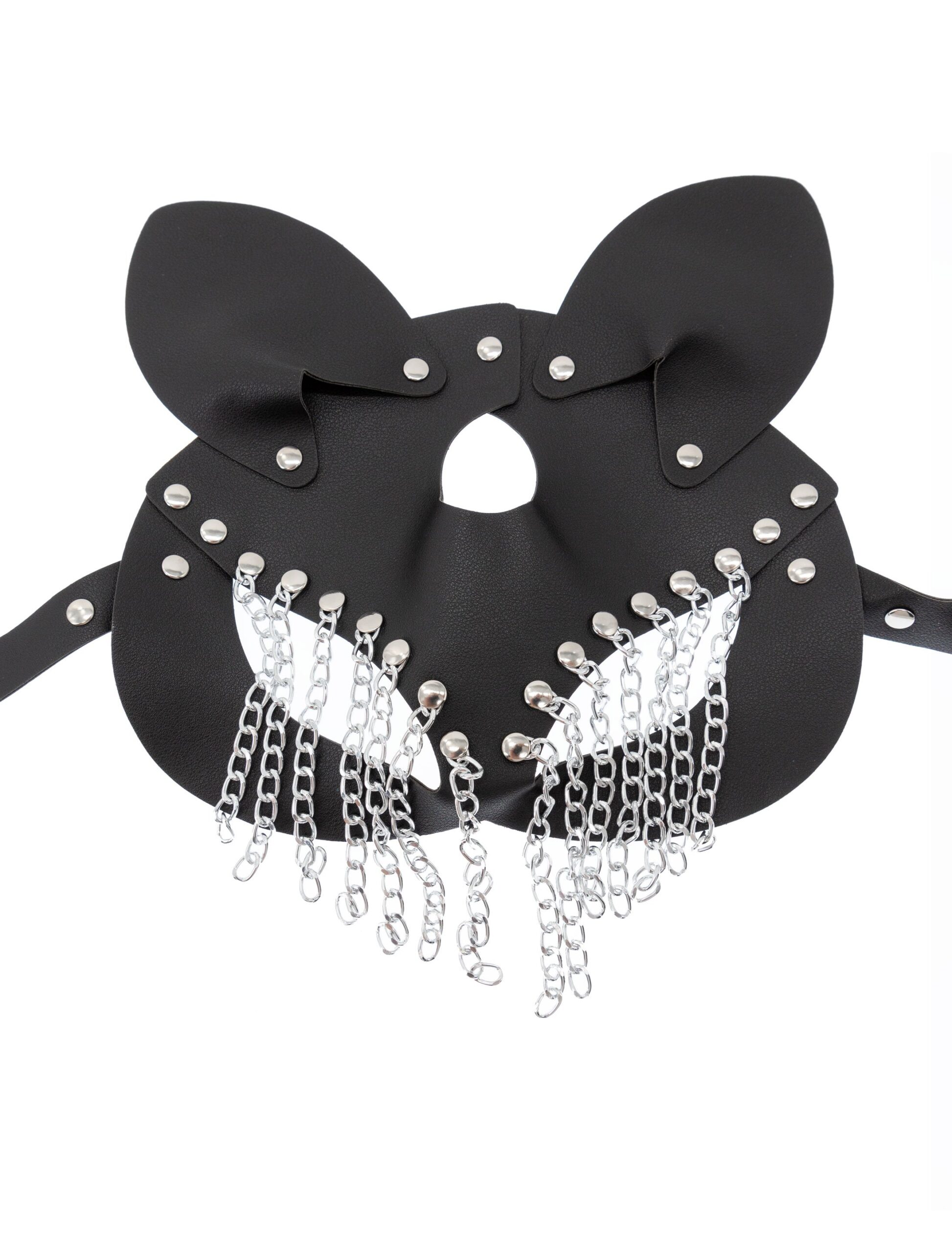 Kostümzubehör Maske Katze mit Ketten schwarz