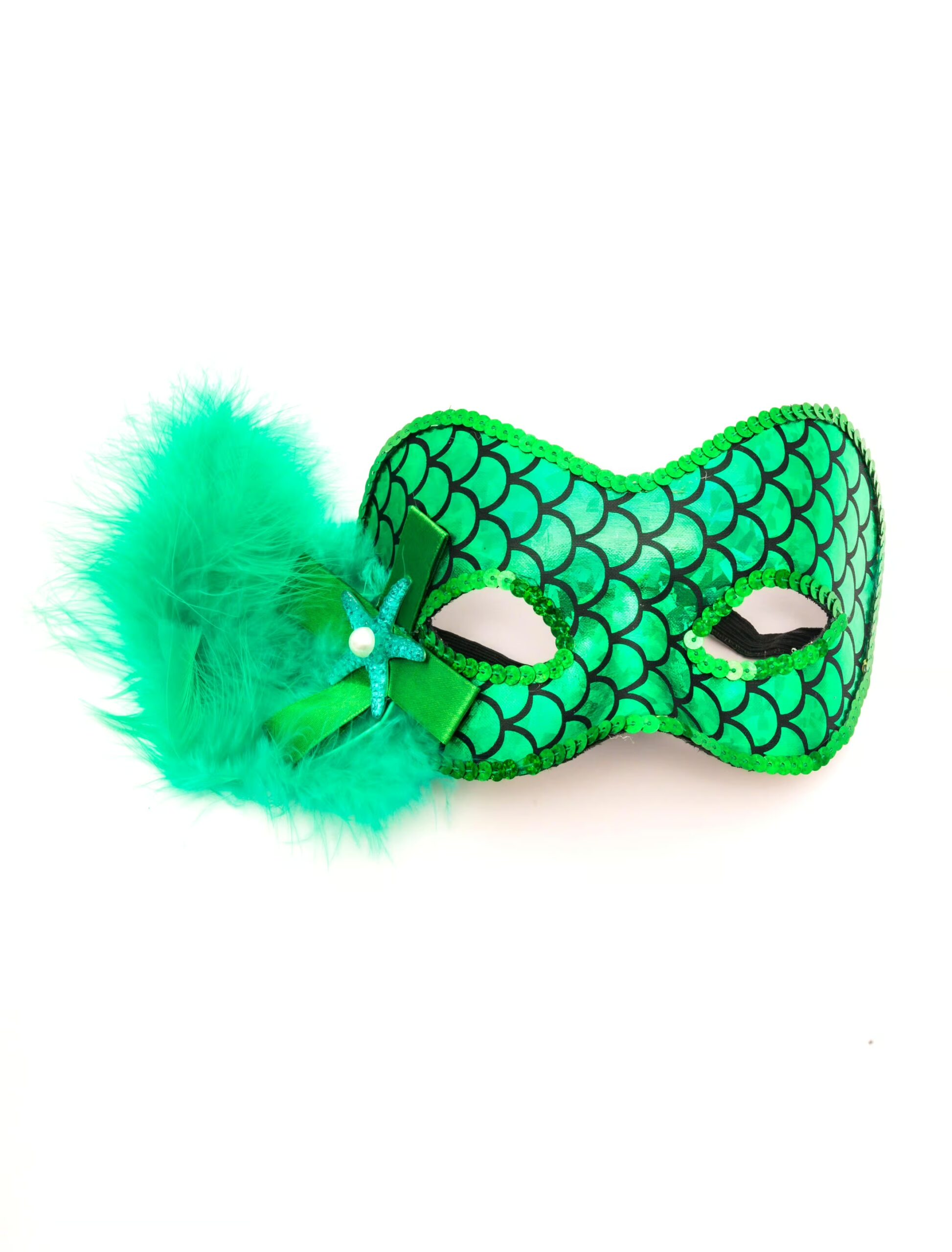 Als Meerjungfrau oder Nixe fehlt Dir noch das gewisse Etwas? Diese grüne Maske Meerjungfrau ist ein echter Hingucker. Die Oberfläche der Maske ist in einem Schuppen-Muster gefertigt und ist mit einem strassbesetzten Kunststoff-Seestern geschmückt. Eine glitzernde Pailletten-Borte ziert den Rand sowie die Augenhöhlen der Maske. Die perfekte Maske für die nächste Faschings- oder Karnevalsparty.