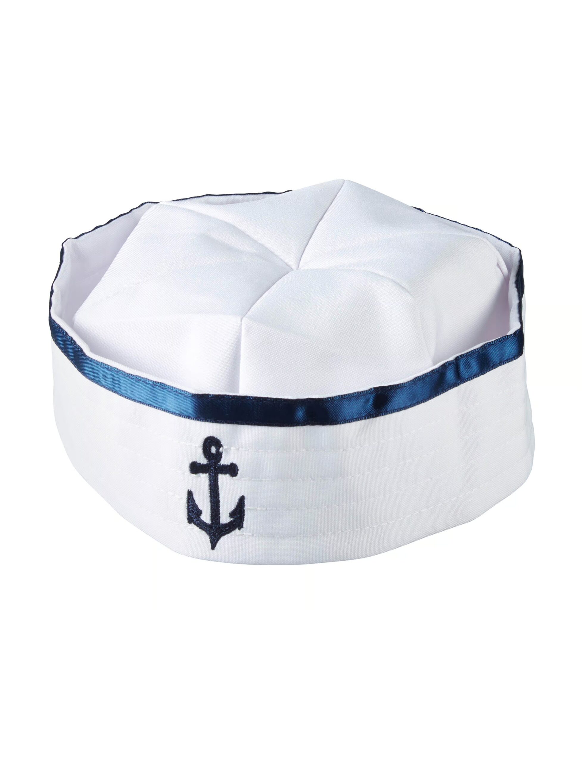 Schiff Ahoi! Mit dem Matrosenhut in der Größe 52 bist Du gut behütet. Im Handumdrehen verwandelt Dich die schicke Kopfbedeckung in einen stattlichen Matrosen, der nicht nur auf See alles fest im Griff hat. Die weiße Mütze ziert einen blauen Anker. In Kombination zu einem weißen Anzug und mit einem Fernglas in der Hand, entsteht ein sehr authentisches Kostüm. Mit der Marinemütze mit Bändern bestimmst Du auf der nächsten Feier die Fahrtrichtung.