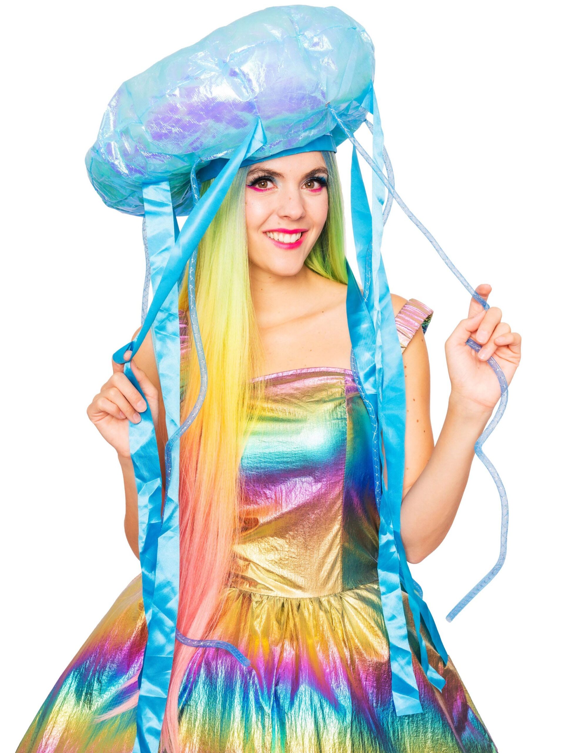 Wer hat Angst vor Quallen? Mit Deiner süßen Erscheinung nimmst Du auf der kommenden Karnevalsparty sicher dem ein oder anderen die Furcht vor den Nesseltierchen. Deine türkise Quallen Mütze besitzt Tentakel und ist mit LEDs ausgestattet, die Du zum Leuchten oder Blinken bringen kannst. So wirst Du selbst im Dunkeln zum absoluten Blickfang auf jeder Party!
