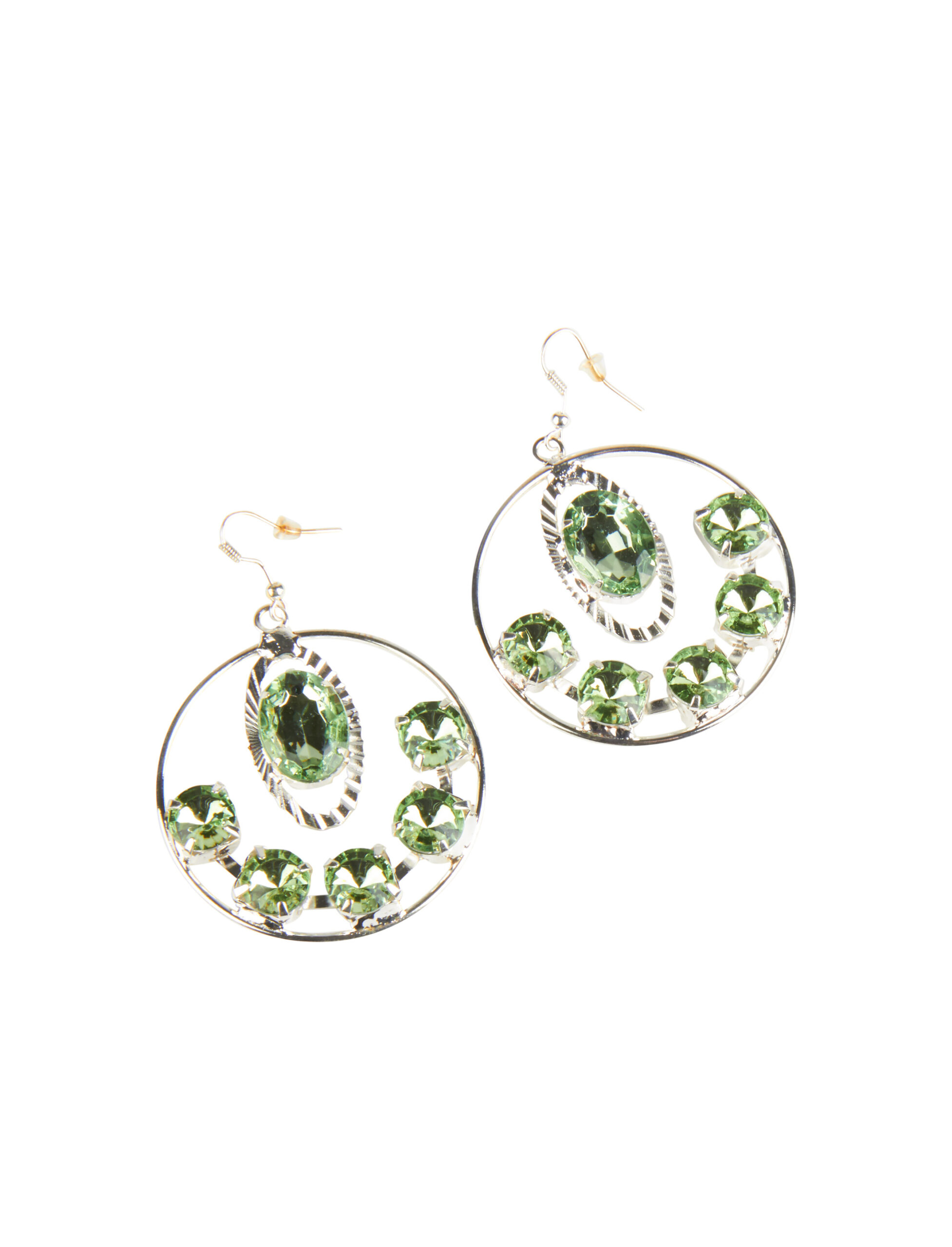 Diese schönen Ohrringe sind ein tolles Accessoire für Dein Kostüm oder Party-Outfit! Die runden Hänger sind mit 6 grünen Glitzersteinen verziert und machen ordentlich was her. Der hübsche Schmuck wir einfach in Deine vorhandenen Ohrlöcher gesteckt. Ein echter Hingucker!