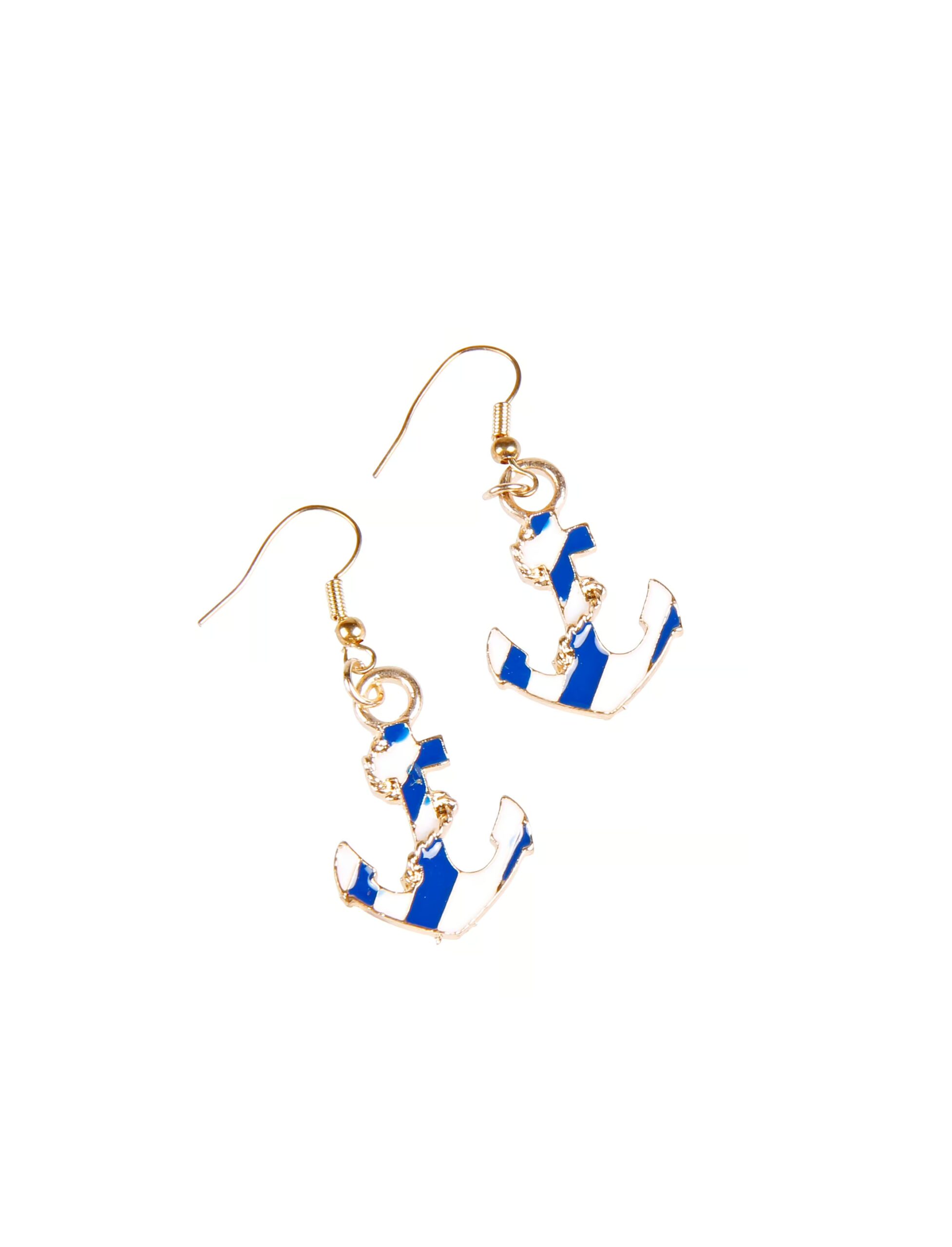 Dein Zuhause ist das Meer! Aber ein paar Mal im Jahr verlässt Du das Schiff und feierst Karneval! Für diesen Anlass machst Du Dich immer besonders hübsch, und zwar mit diesen beiden Anker-Ohrhängern in Blau und Weiß. Die hübschen Schmuckstücke werden zusätzlich von goldfarbenem Tau umgeben, wodurch sie besonders edel aussehen! Das perfekte Accessoire für jedes Matrosinnen-Kostüm!