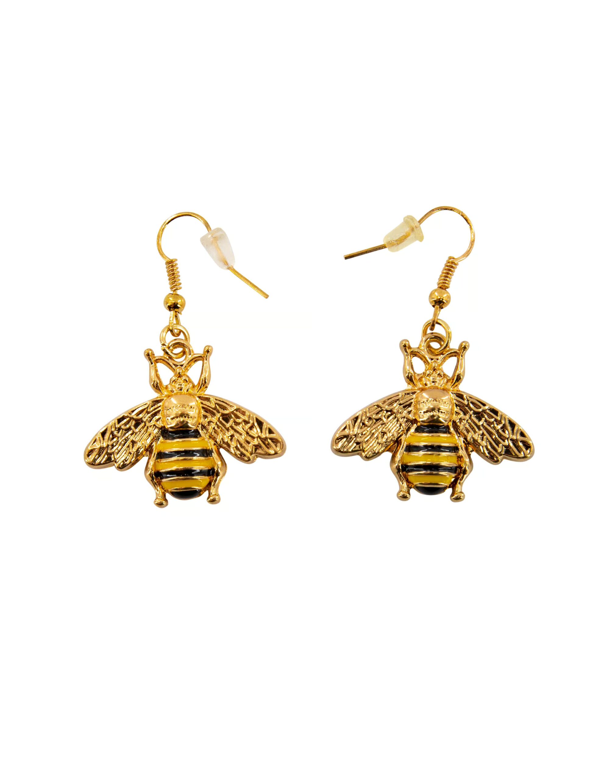 Ganz bezaubern sind unsere Bienen Ohrringe mit den gelb-schwarz gesteiften Bienchen samt Flügelchen und den hübschen goldfarbigen Details aus Metall, mit denen Du nicht nur Dein schickes Bienen Kostüm gekonnt vervollständigst, sondern die auch zu vielen anderen Kostümen aus unserem Shop gut passen. Die charmanten, mit metallenen Ohrbügeln und Sicherheitssteckern ausgestatten Bienen Ohrringe sind ein entzückendes Accessoire, das zum Fasching und Karneval sowie auf angesagten Mottopartys die Blicke auf sich zieht.