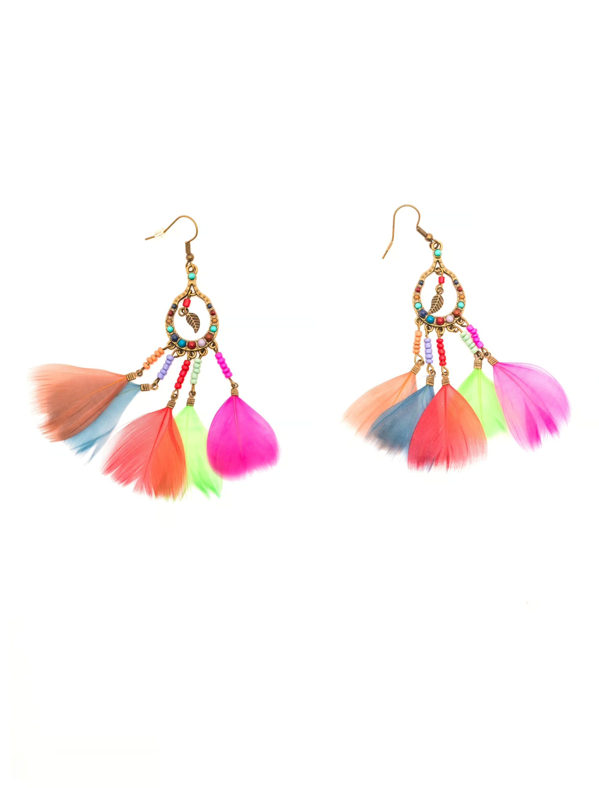 Kostümzubehör Ohrringe Indianerin mit Federn bunt Farbe: mehrfarbig