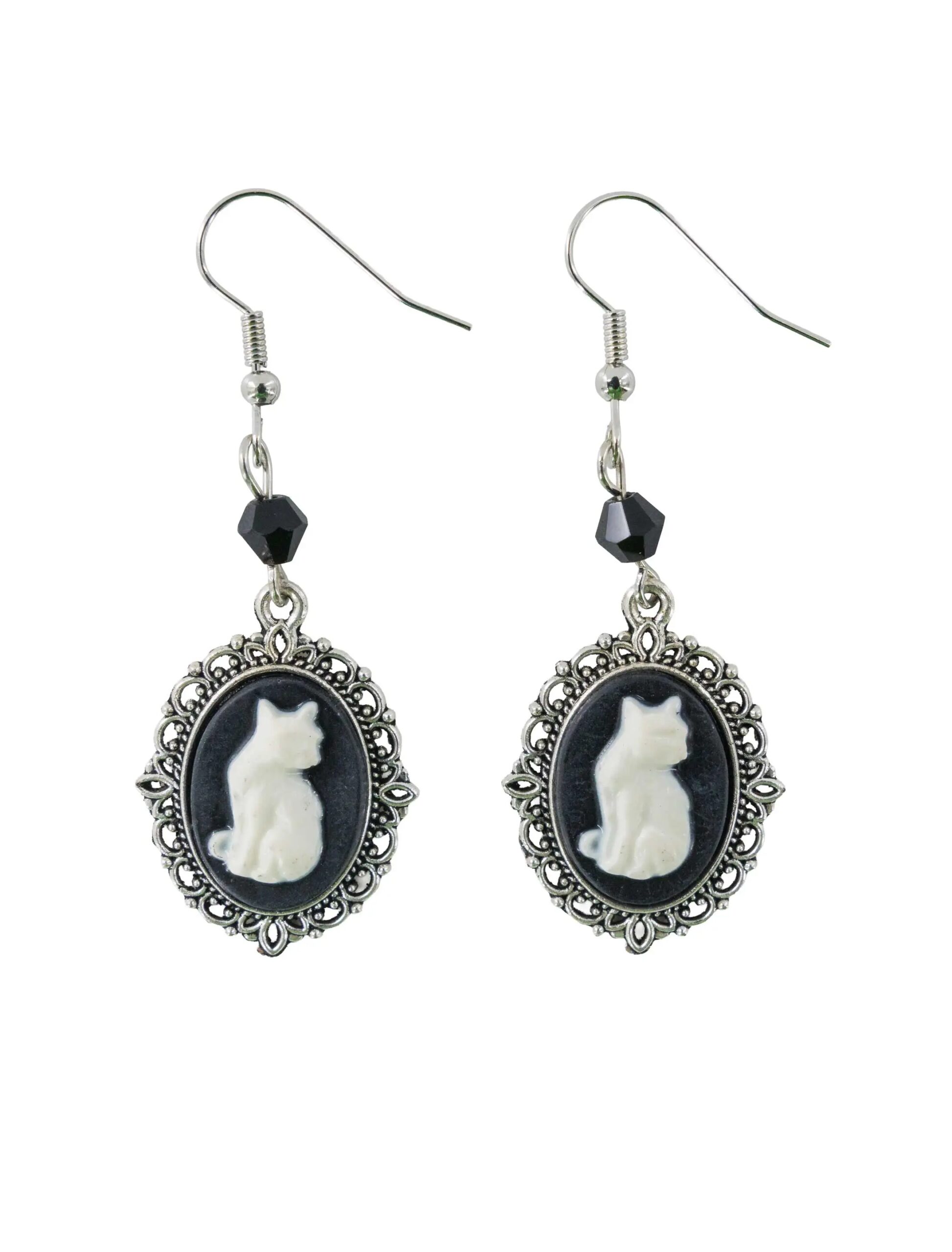 Ohrringe Katze silber/schwarz, ideal für Karneval & Fasching