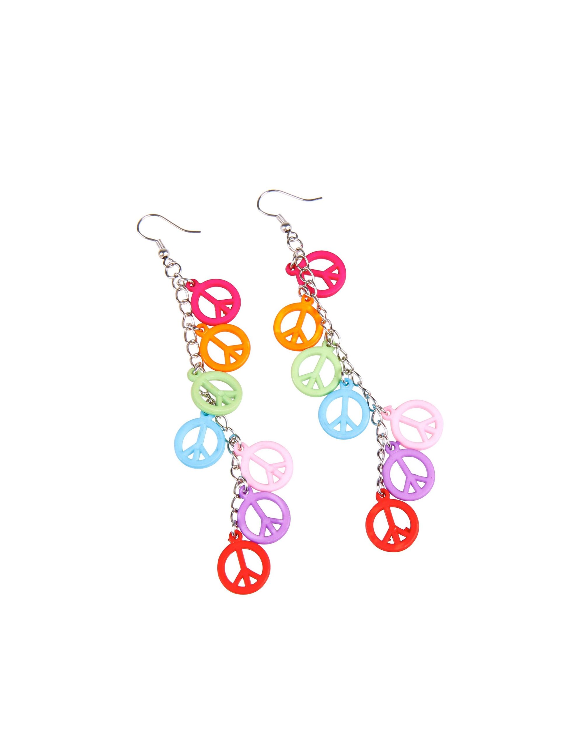Kostümzubehör Ohrringe lang Peace bunt Farbe: mehrfarbig