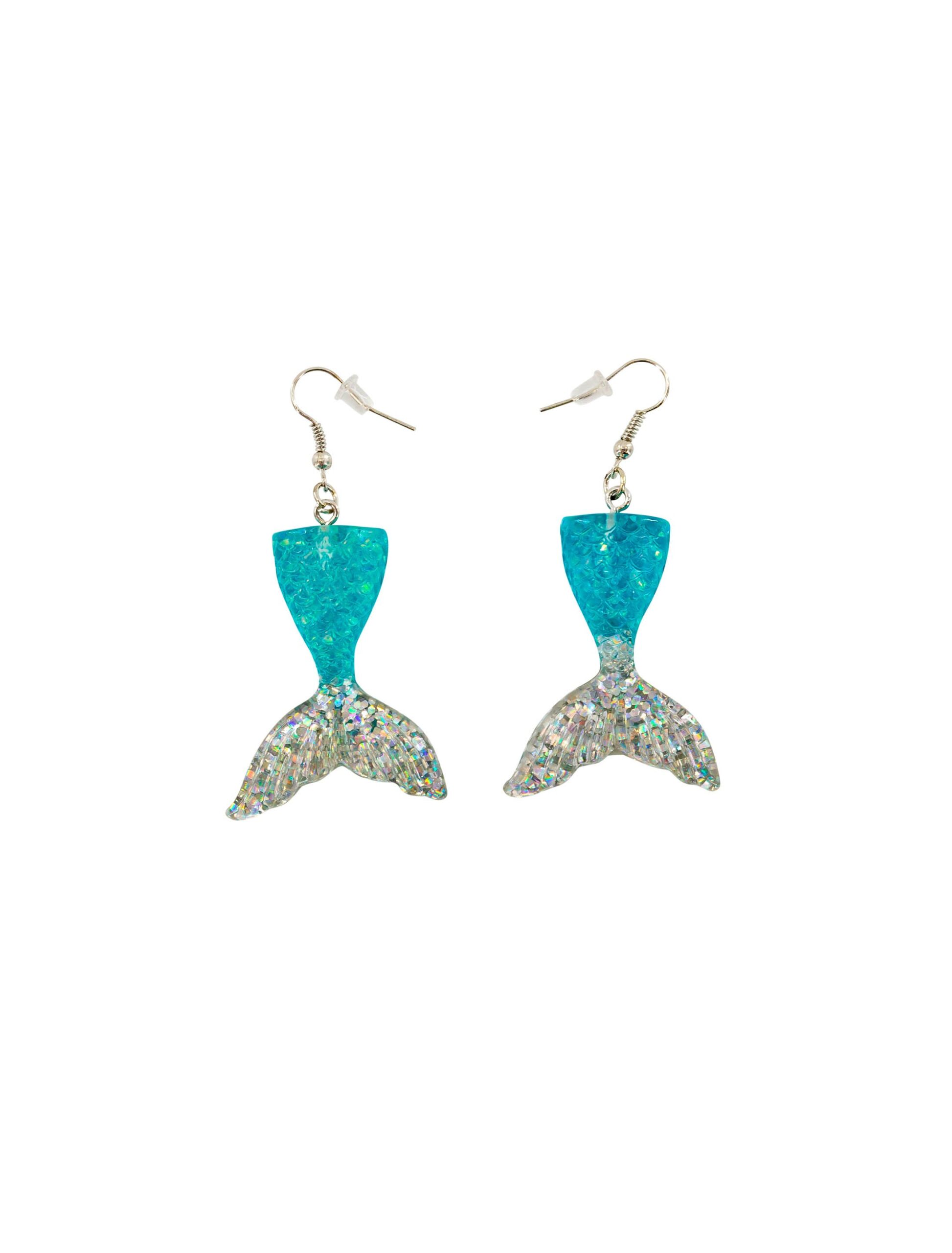In schillerndem Türkis und Weiß präsentieren sich diese bezaubernden Meerjungfrauflossen Ohrringe, die perfekt zu den schönen Unterwasserwelt Kostümen aus unserem Shop passen und Dein individuelles Fasching- und Karnevals Outfit wirkungsvoll ergänzen. Die aparten Ohrringe aus Kunststoff sind mit metallenen Ohrbügeln und Sicherheitssteckern ausgestattet und schaukeln bei jedem Kopfumdrehen neckisch hin und her. Sie sind tolle Blickfänger und nicht nur zum Fasching und Karneval, sondern auch auf Motto-, Beach- und Pool- Partys ein angesagtes Accessoire.