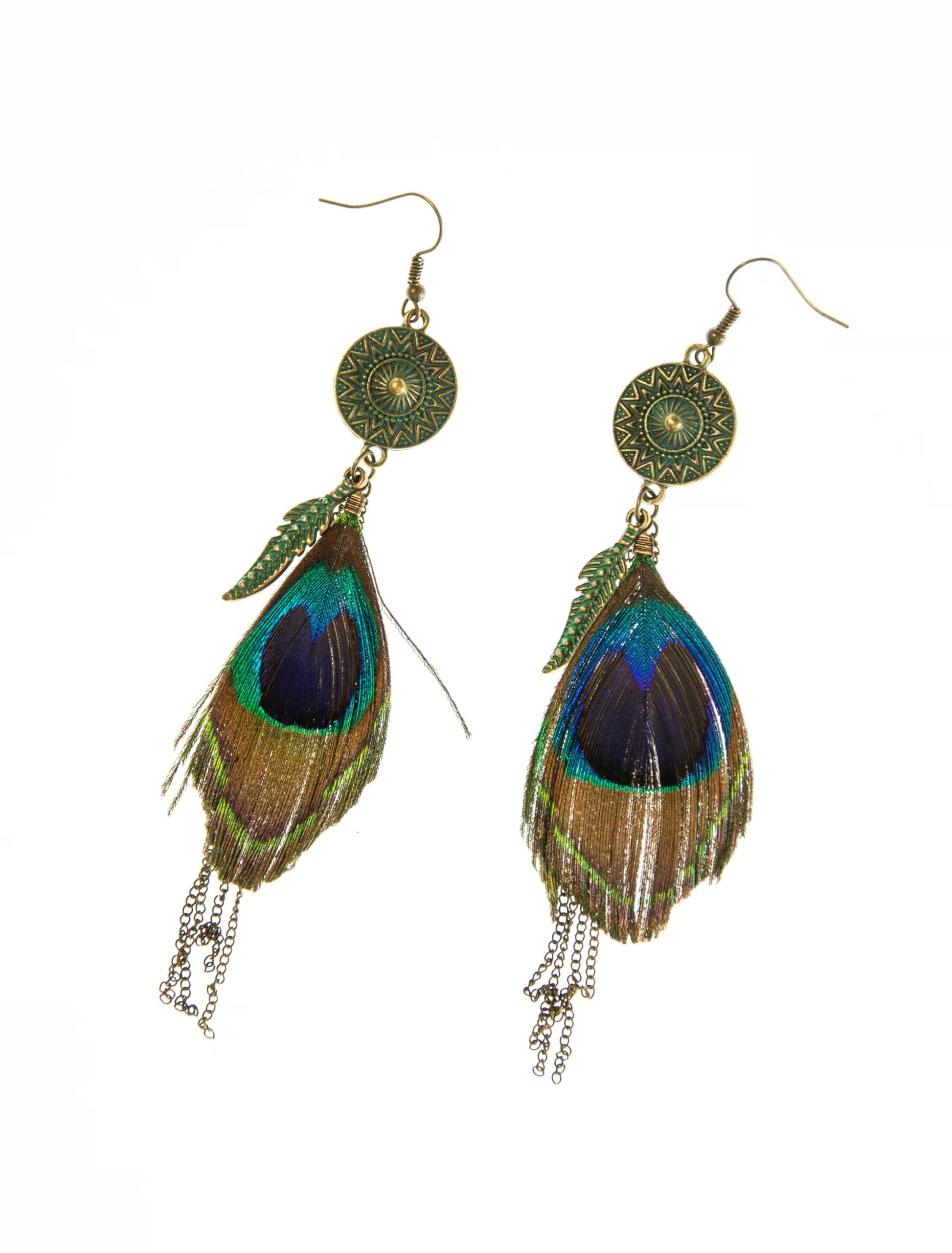 Kostümzubehör Ohrringe mit Pfauenfedern Farbe: türkis