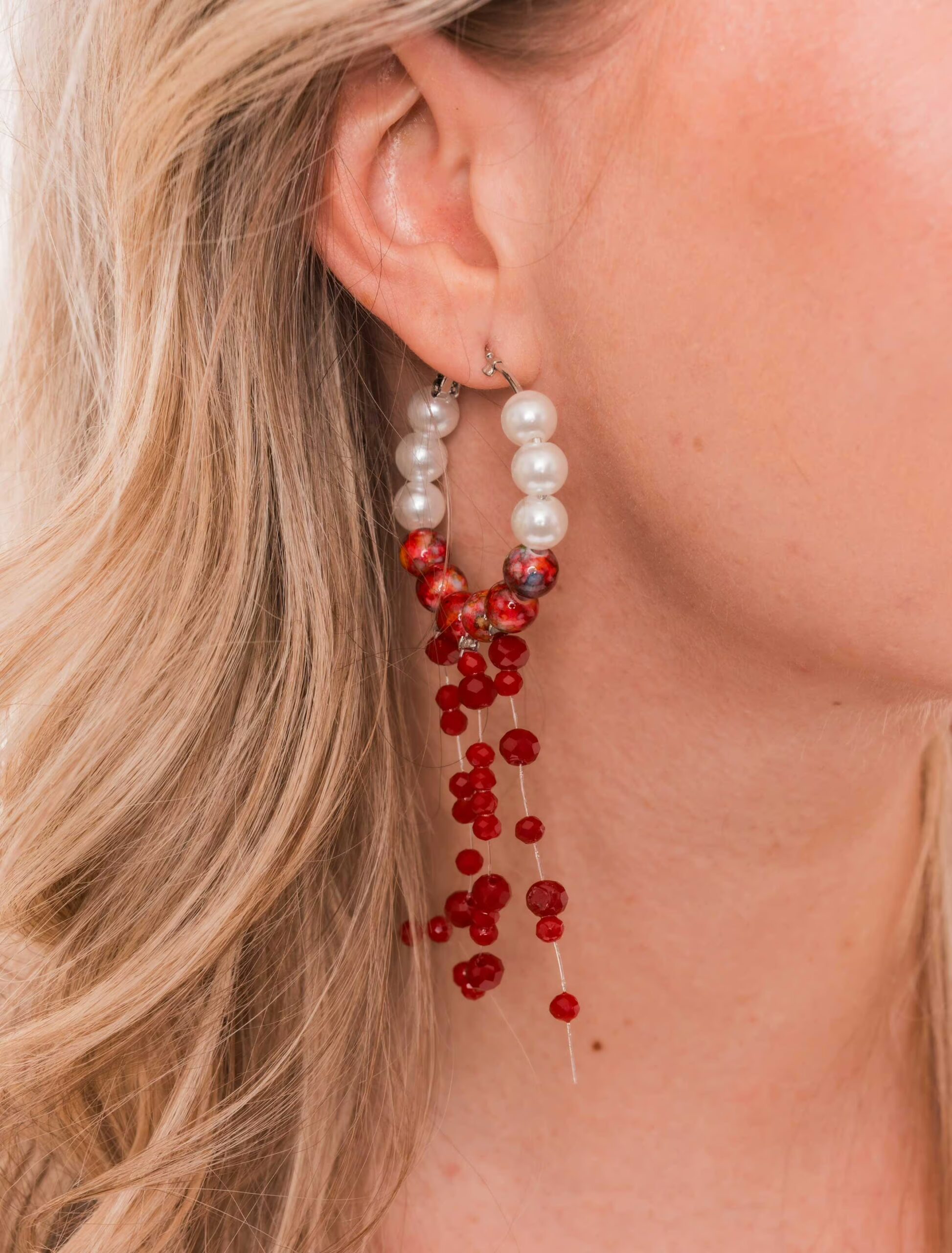 Ohrringe Perlen blutig weiß/rot, ideal für Karneval & Fasching
