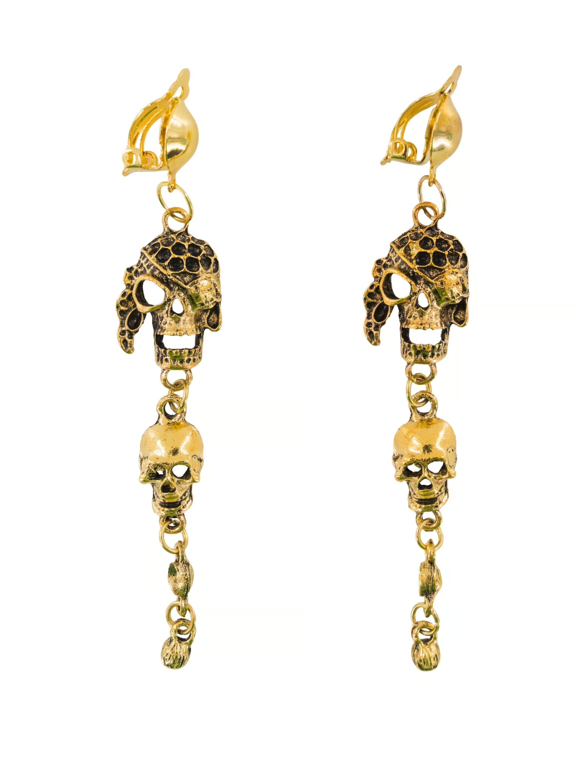 Kostümzubehör Ohrringe Totenköpfe mit Clip gold