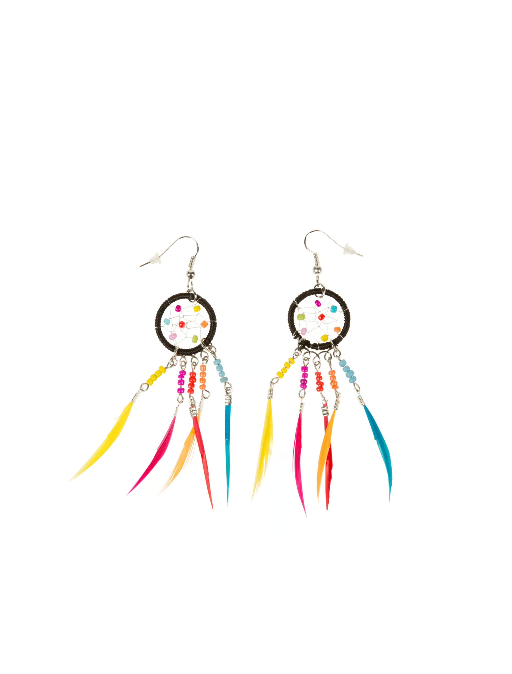 Kostümzubehör Ohrringe Traumfänger mit Federn bunt Farbe: mehrfarbig