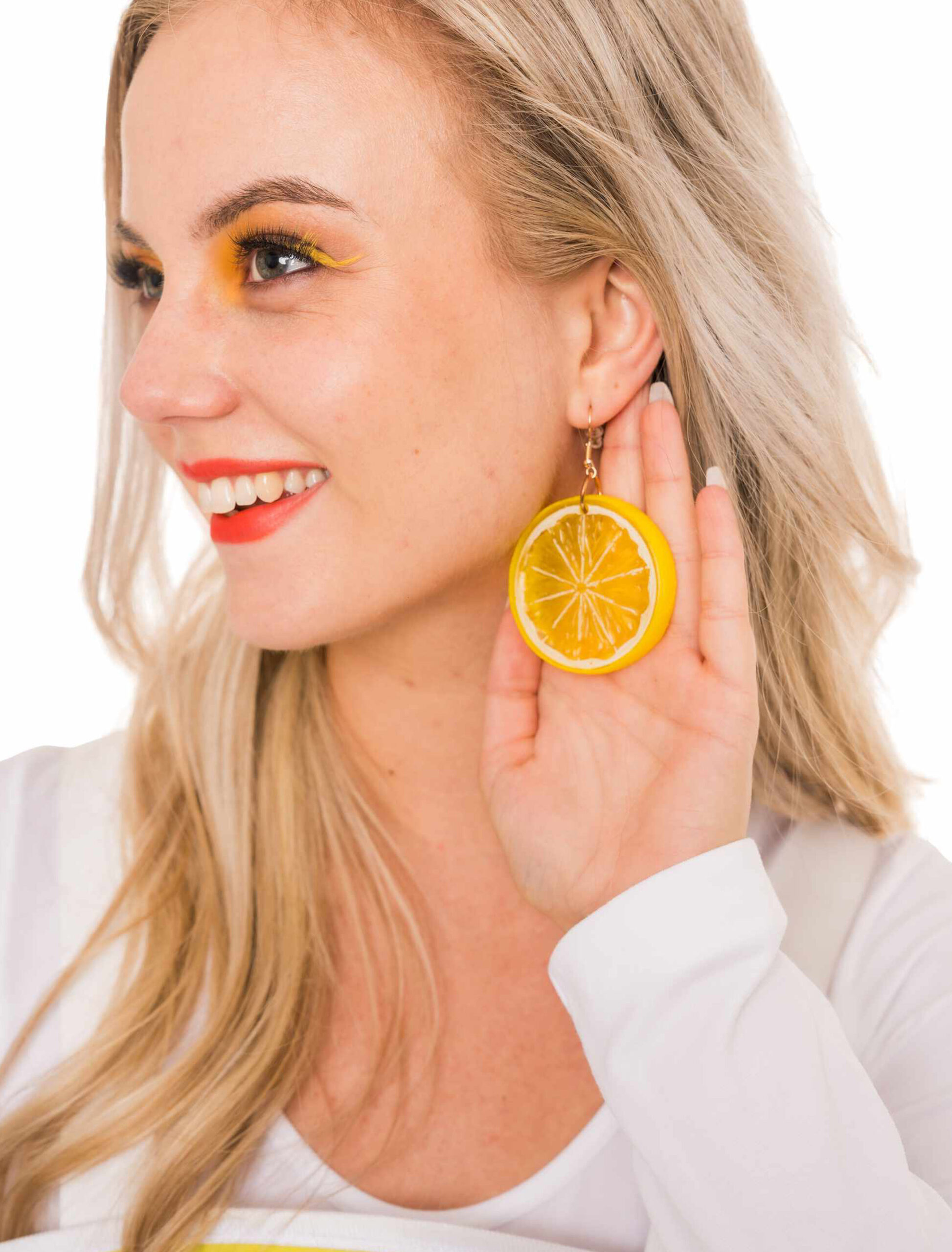 Lust auf einen frischen Look, der gute Laune versprüht und dich wie einen sonnigen Tag in den Tropen fühlen lässt? Dann schnapp dir unsere spritzigen Zitrus Ohrringe! Ob für die nächste Sommerparty, ein Festival oder einfach, um dem Alltag ein bisschen Vitamin C zu verpassen: Diese Ohrringe bringen sofort frischen Schwung in dein Outfit. Sie sind ein echter Hingucker und machen klar, dass du für jeden Spaß zu haben bist. Die leuchtenden Zitronenscheiben baumeln leicht und fröhlich an deinen Ohren, als würden sie direkt nach Sonne, Strand und Cocktails rufen. Bring mit diesen Ohrringen tropisches Flair in deinen Look und lass die Welt wissen, dass du der fruchtigste Hingucker weit und breit bist!