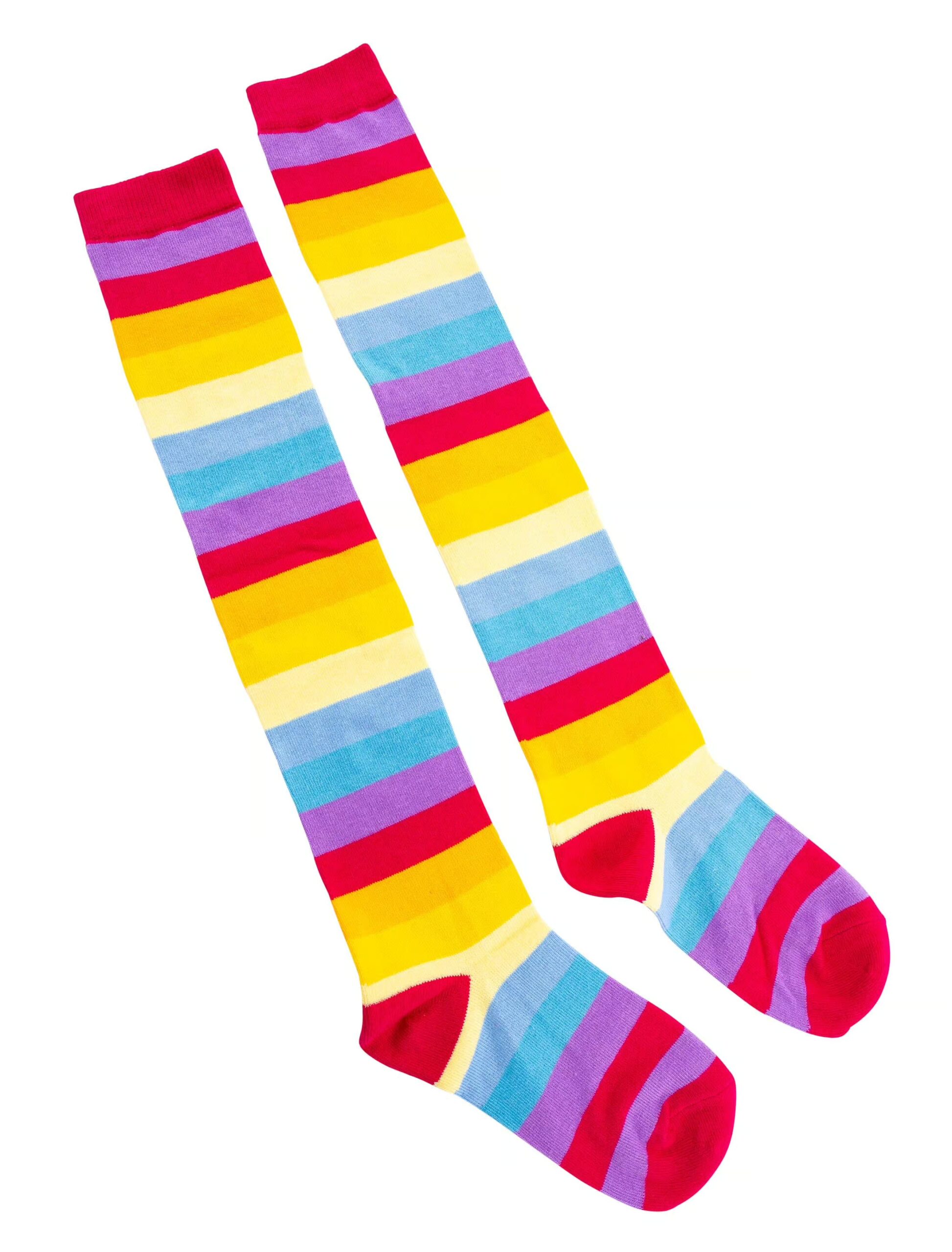 Diese bunten, breit gestreiften Overknees aus Baumwolle, Polyester und Elasthan in fröhlichen Farben sind das ideale Basic für Deine schrillen Kostüme im Flower Power Look. Sie ziehen alle Blicke auf sich und machen Dich zum farbenfrohen Eyecatcher auf Kostümpartys, Karnevalsveranstaltungen und Mottopartys. Kombiniere die Overknees mit 70er Jahre Kostümteilen und schrillen Accessoires aus unserem Shop und hab Spaß beim feiern.