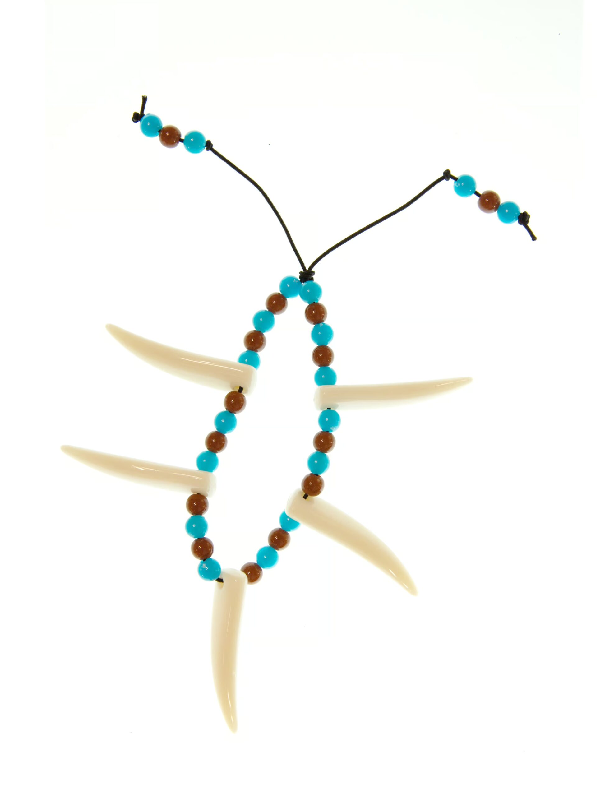 Kostümzubehör Perlenarmband türkis/braun mit Zähnen