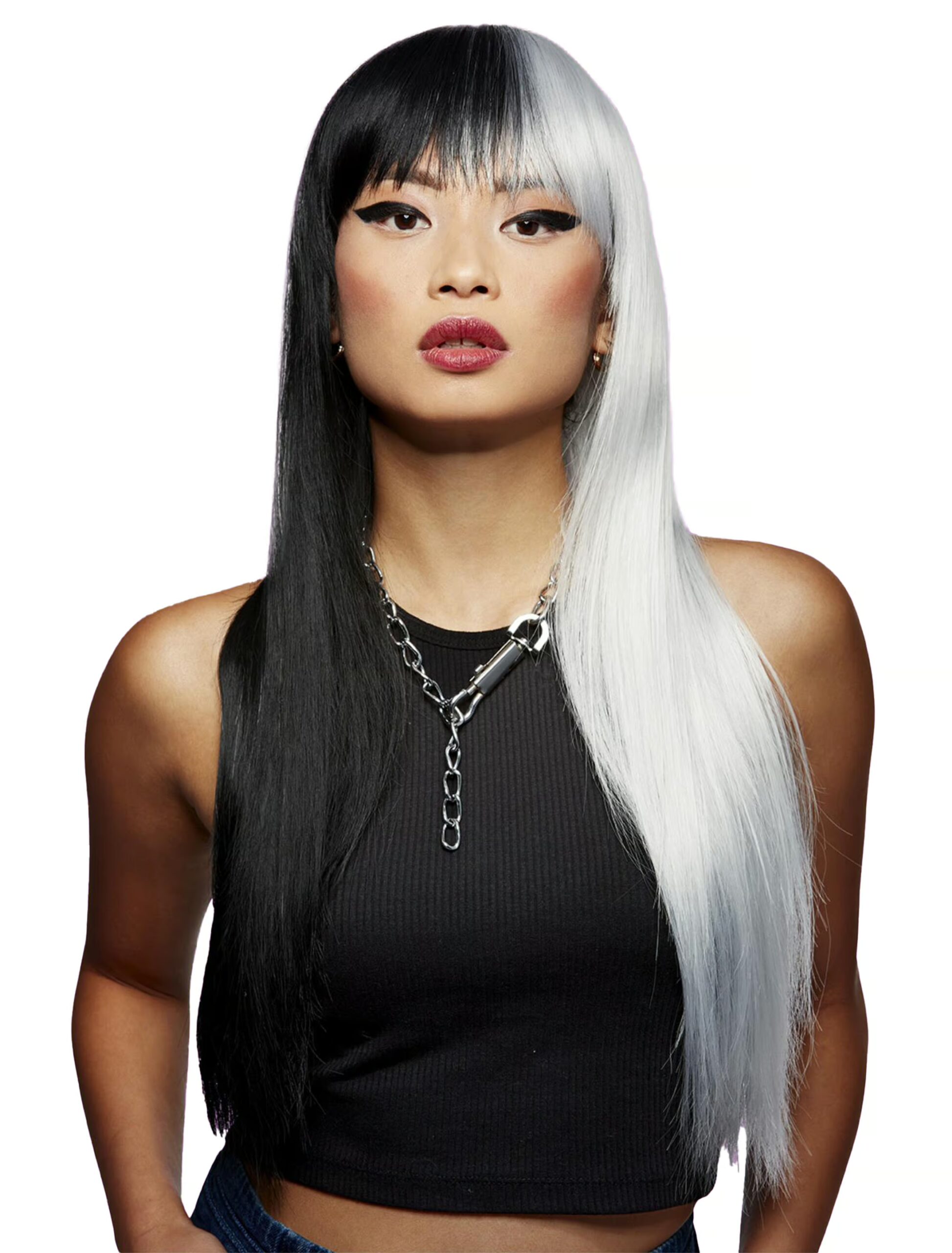Kostümzubehör Perücke Langhaar glatt mit Pony schwarz/weiß