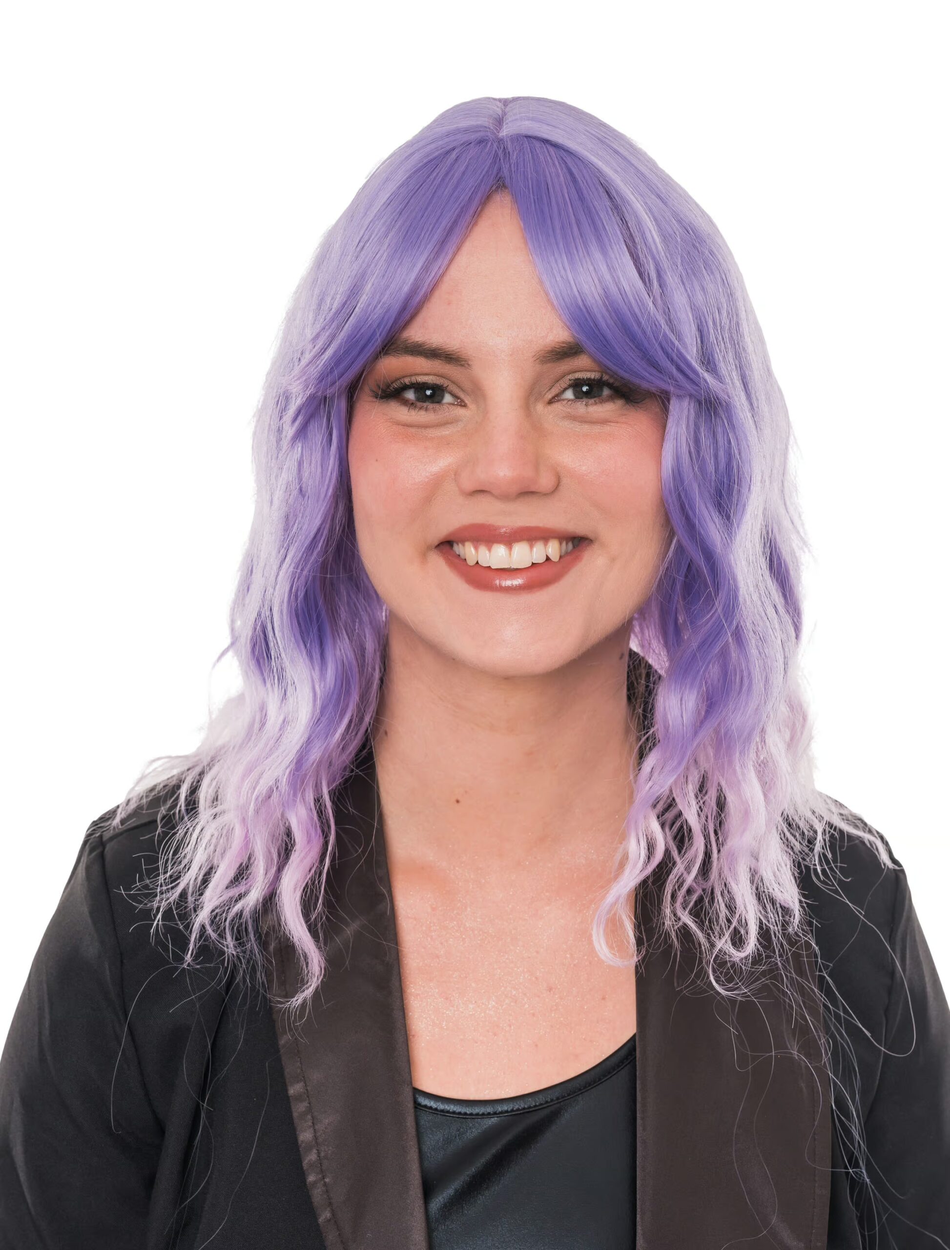 Kostümzubehör Perücke mit Pony, schulterlang, lockig lila
