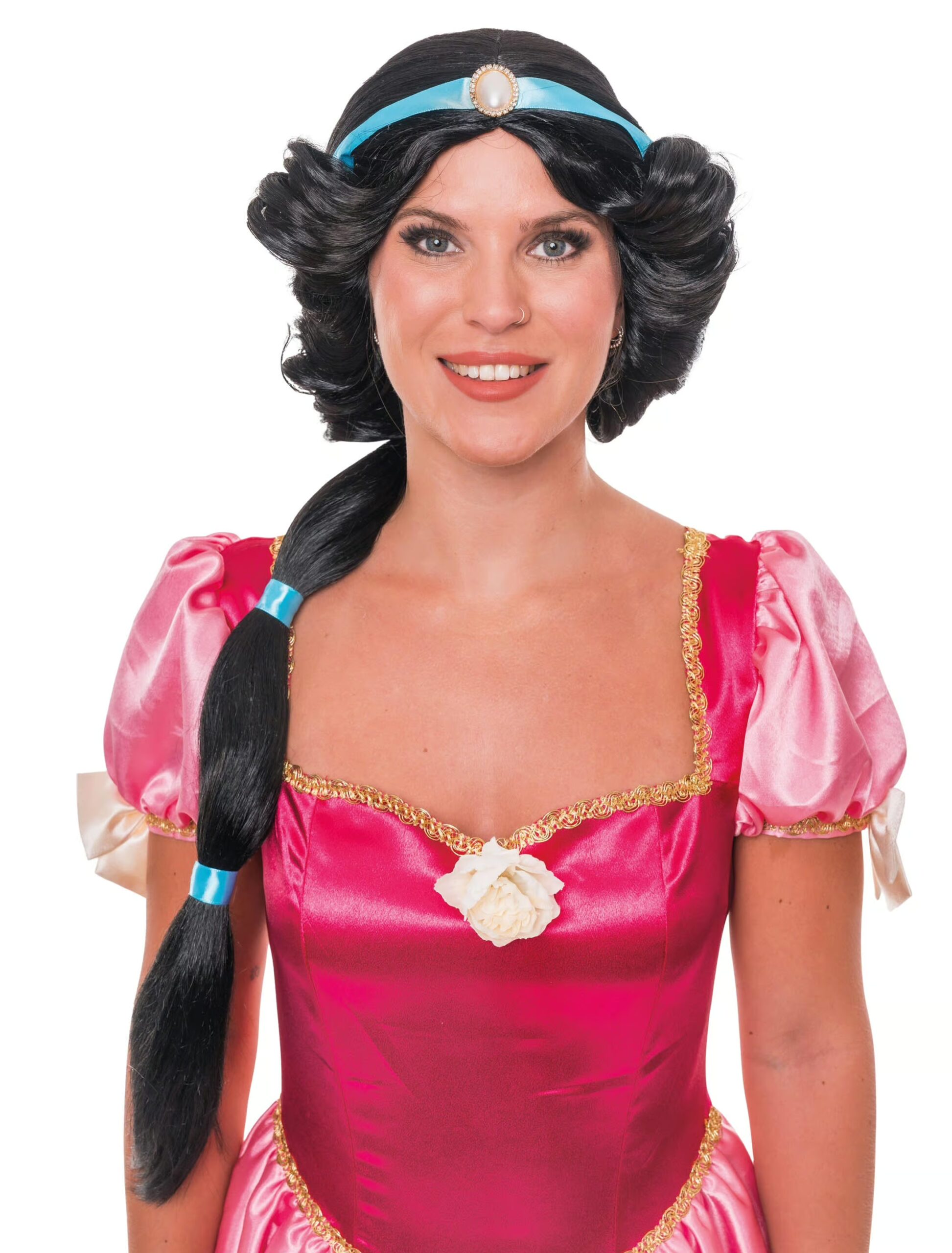 Mit unserer Perücke im orientalischen Stil wirst du selbst zur Märchenprinzessin aus 1001 Nacht. Die Perücke überzeugt mit einem langen, voluminösen Zopf, der durch ein farblich passendes Haarband kunstvoll unterteilt wird. Oben schmückt ein dekoratives Kopfband die Stirn, veredelt mit einer auffälligen Brosche, die sofort ins Auge fällt. Perfekt für Karneval, Mottopartys oder Kostüme im orientalischen Look!