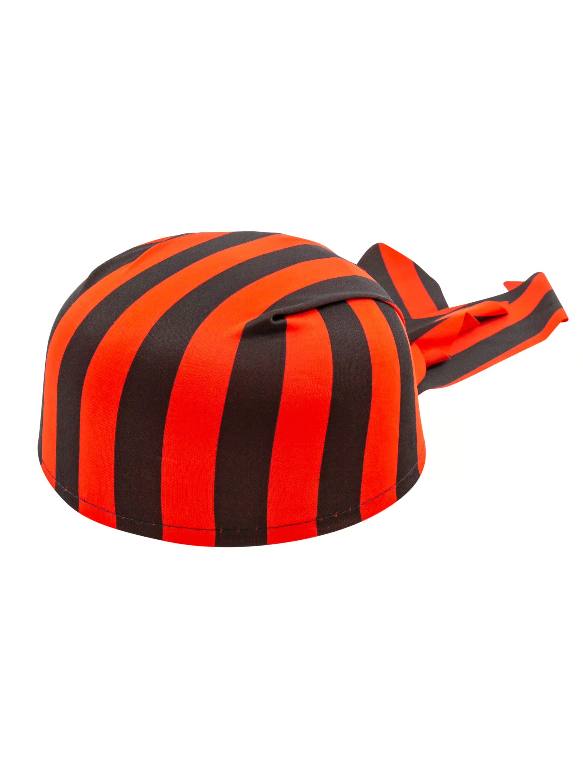 Mit diesem originellen rot-schwarz, gestreiften Piratenhut, der an ein gebundenes Kopftuch erinnert und der perfekt zu den tollen PiratenKostümen aus unserem Shop passt, wird Dein Kind zum echten Piraten, Seeräuber, Korsar oder Freibeuter, der zum Fasching und Karneval sowie auf Mottopartys und Kindergeburtstagen nicht nur zum bewunderten Eyecatcher wird, sondern auch viel Spaß an seiner tollen Verkleidung hat.