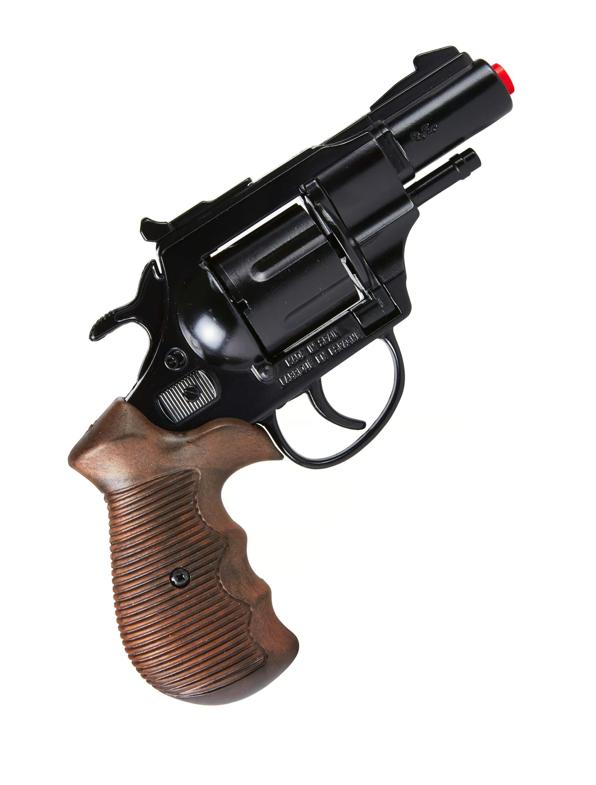 Du wolltest schon immer an Karneval Deinem Traumberuf als Polizist folgen, das kannst Du jetzt endlich tun. Diese Pistole Polizei schwarz mit einer 12-Schuss-Trommel ist ein echter Hingucker. Die Pistole hat eine Länge von 21,5 cm. Der Griff besteht aus Kunststoff und der Revolver aus 100% Metall. Eine schicke Spielzeugpistole zu Deinem Kostüm als Polizist oder Agent an Karneval und Fasching!
