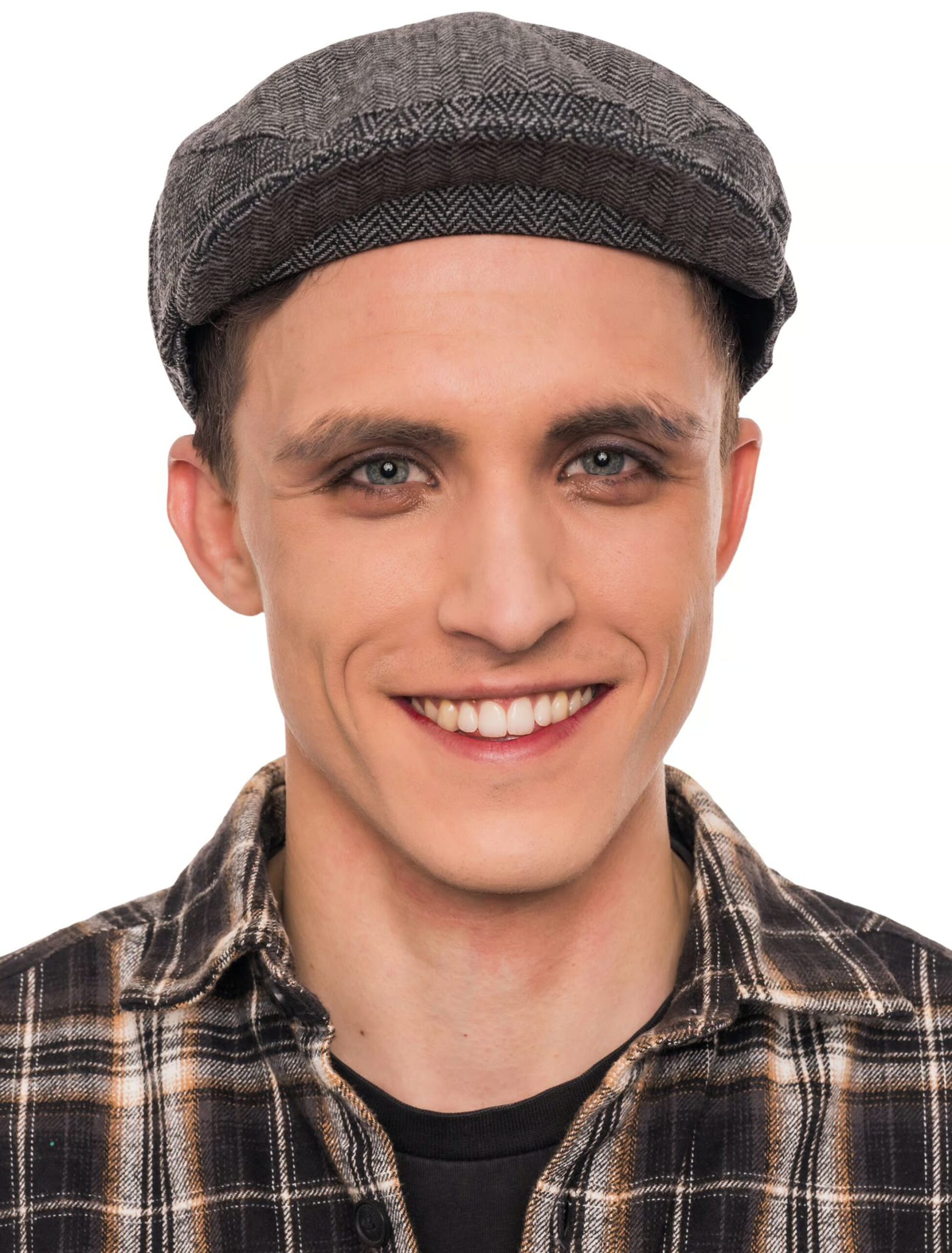 Ob als Jockey, Jäger, Farmer, Schornsteinfeger oder feiner Herr verkleidet – diese klassische Schiebermütze passt zu einer Vielzahl an Kostümen. Sie besteht aus einem edlen Stoff aus schwarz-grauen Fischgrätenmuster. Dazu passen besonders gut eine Weste, auffällige und hohe Strümpfe, Hosenträger und eine Knickerbocker-Hose. Mit dieser Schirmmütze lässt Du die 30er wieder aufleben!