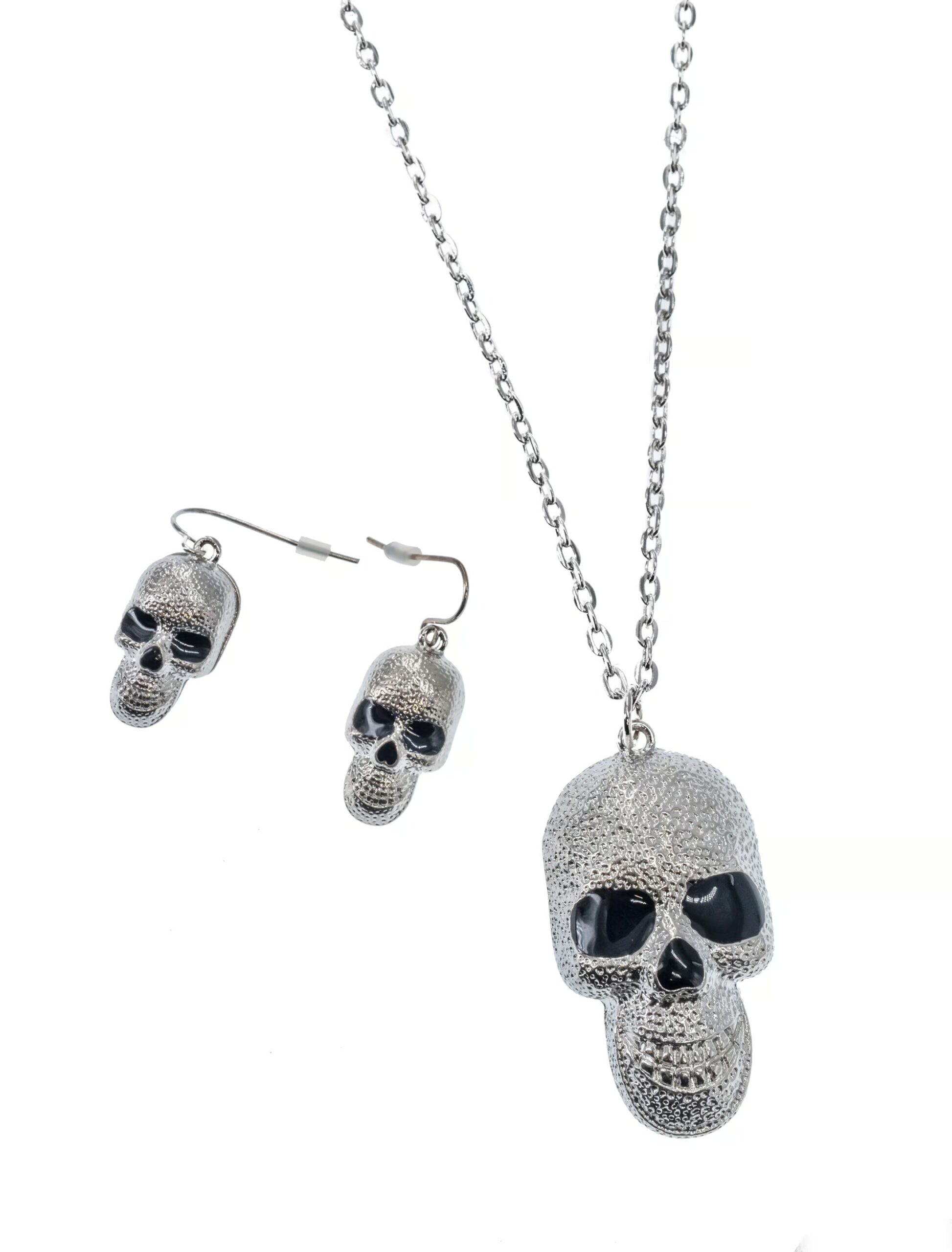 Kostümzubehör Schmuckset Totenkopf Kette & Ohrringe Farbe: silber