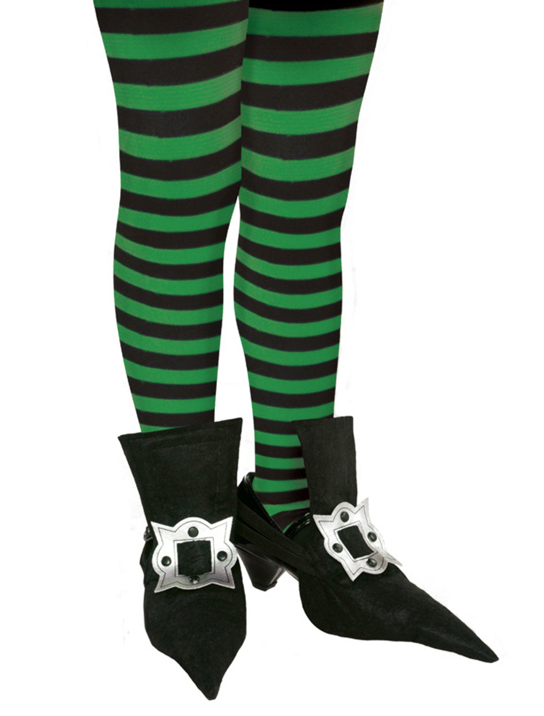 Echte Hexenschuhe zu bekommen ist gar nicht so einfach. In der heutigen Zeit liegt der Modegeschmack einfach wo anders. Doch verzweifle nicht, für Dein Hexen Kostüm gibt es tolle Überzieher aus Polyester, die Deine Straßenschuhe im Handumdrehen in echte Hexenschuhe verwandeln. Das perfekte Kostüm Accessoire für die nächste Halloween-, Faschings- oder Karnevalsparty.