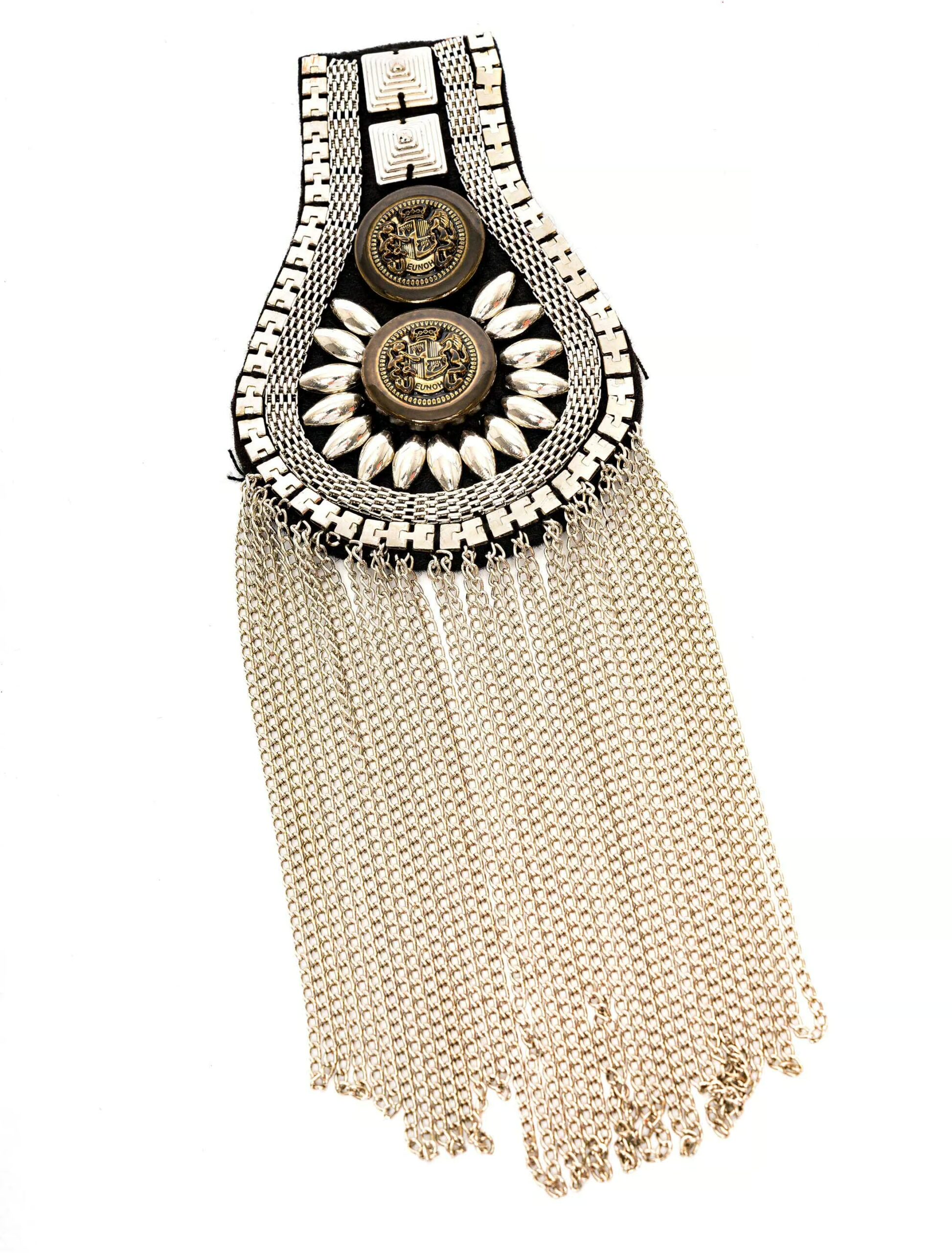 Du bist auf der Suche nach einem passenden Accessoire für ein richtig authentisches Steampunk Kostüm? Diese silberne Schulterklappe mit zwei schicken Knöpfen verleiht der Jacke, dem Frack oder dem Mantel das gewisse Etwas. Die Schulterklappe hat eine Größe von 9,5 x 6 cm und ist mit zwei Anstecknadel versehen. Sie kann somit ganz einfach auf das Oberteil angebracht werden. Diese Schulterklappe ist das ideale Kostüm Accessoire für Dein Barock oder Steampunk Kostüm.